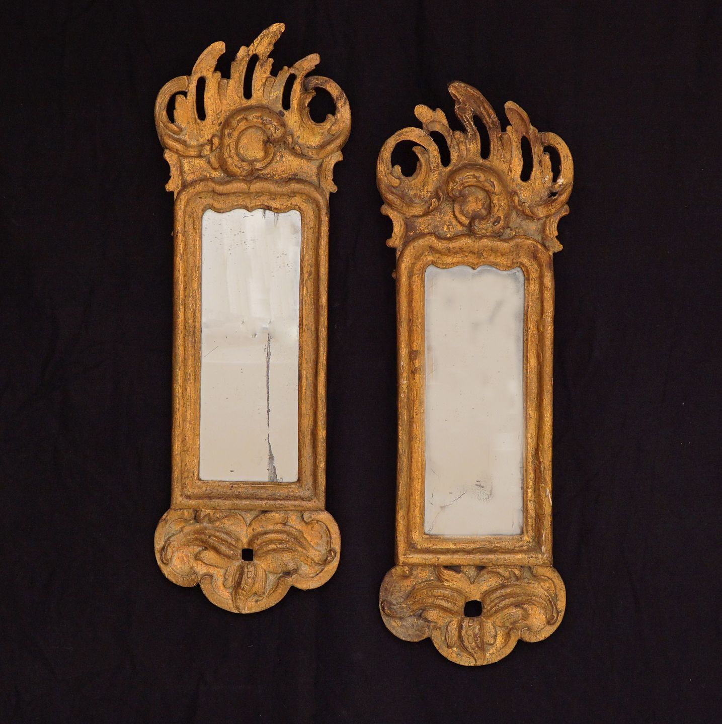 Et par smalle rokoko spejle. Danmark ca. år 1760. Mål: 55x19cm