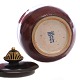 Patrick Nordström, tilskr., for Royal Copenhagen, lågskål i stentøj med okseblodsglasur og bronzelåg. Signeret tre bølger og 39/23. H: 15cm. D: 14cm