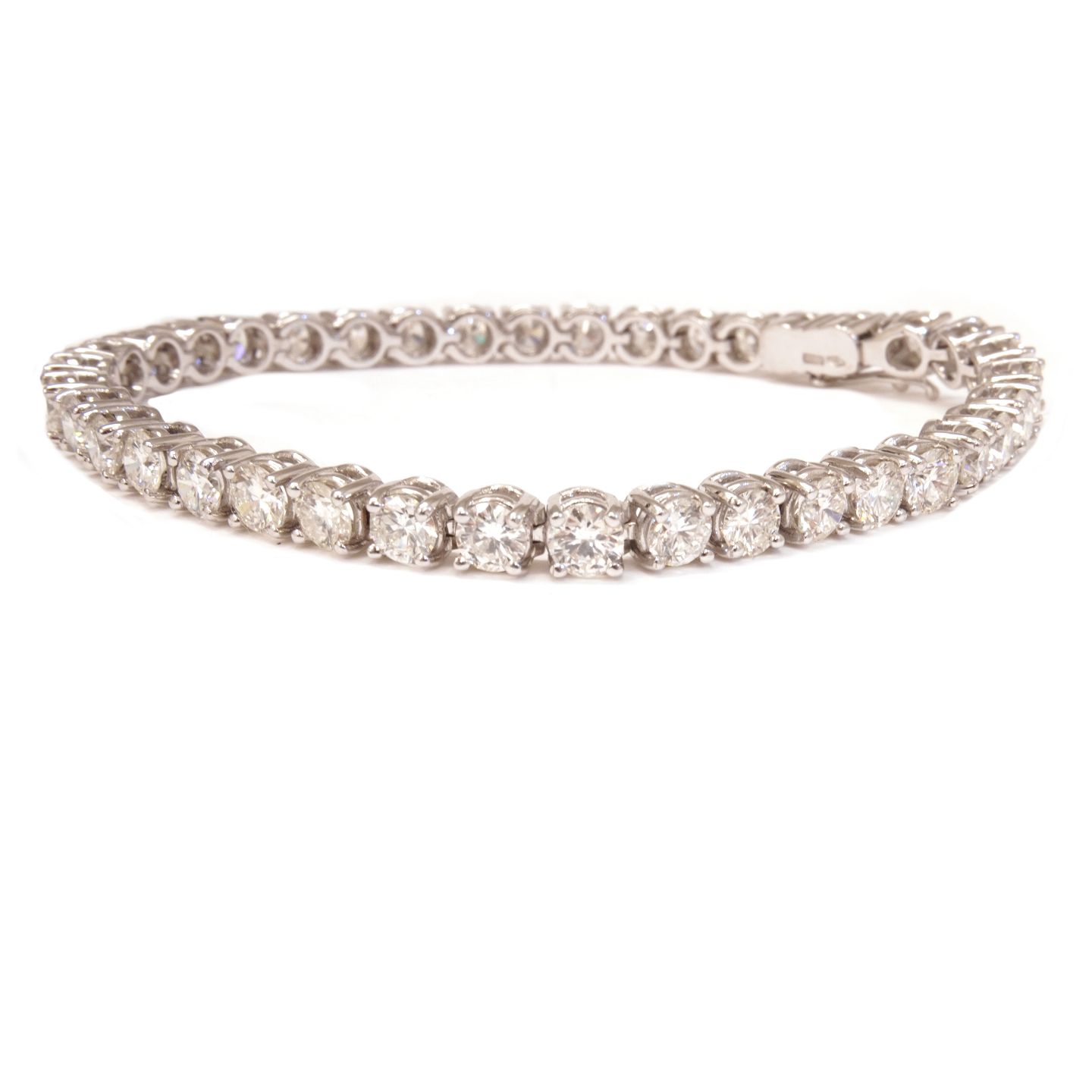 18kt white gold tennis bracelet with 38 diamonds each ca. 0,25ct. All in all ca. 9,5ct. L: 18,5cm