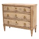 Gustaviansk kommode med tre skuffer kannelerede sidestykker og tilspidsede ben