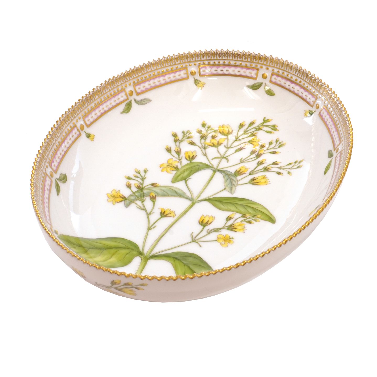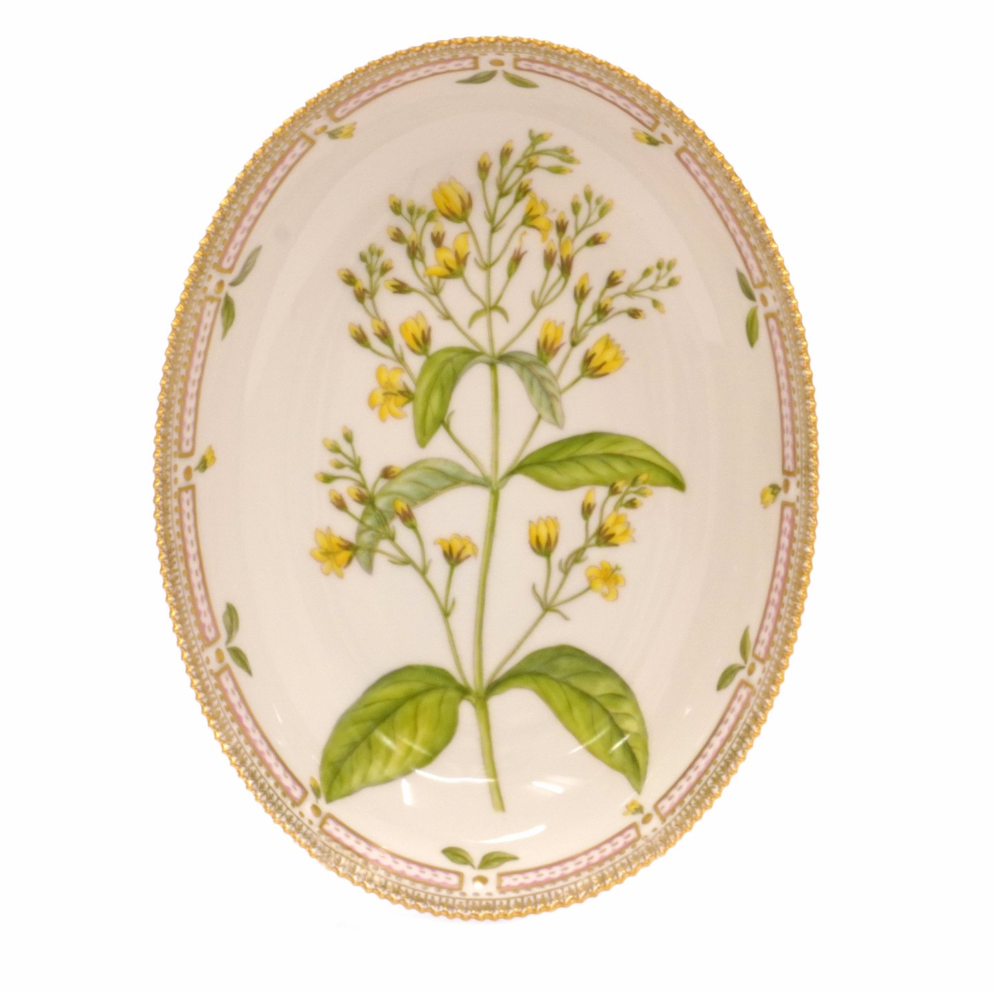 Royal Copenhagen Flora Danica oval dish #3507. "Lysimachia vulgaris L." Year 1974-78. H: 5,8cm. L: 27,5cm