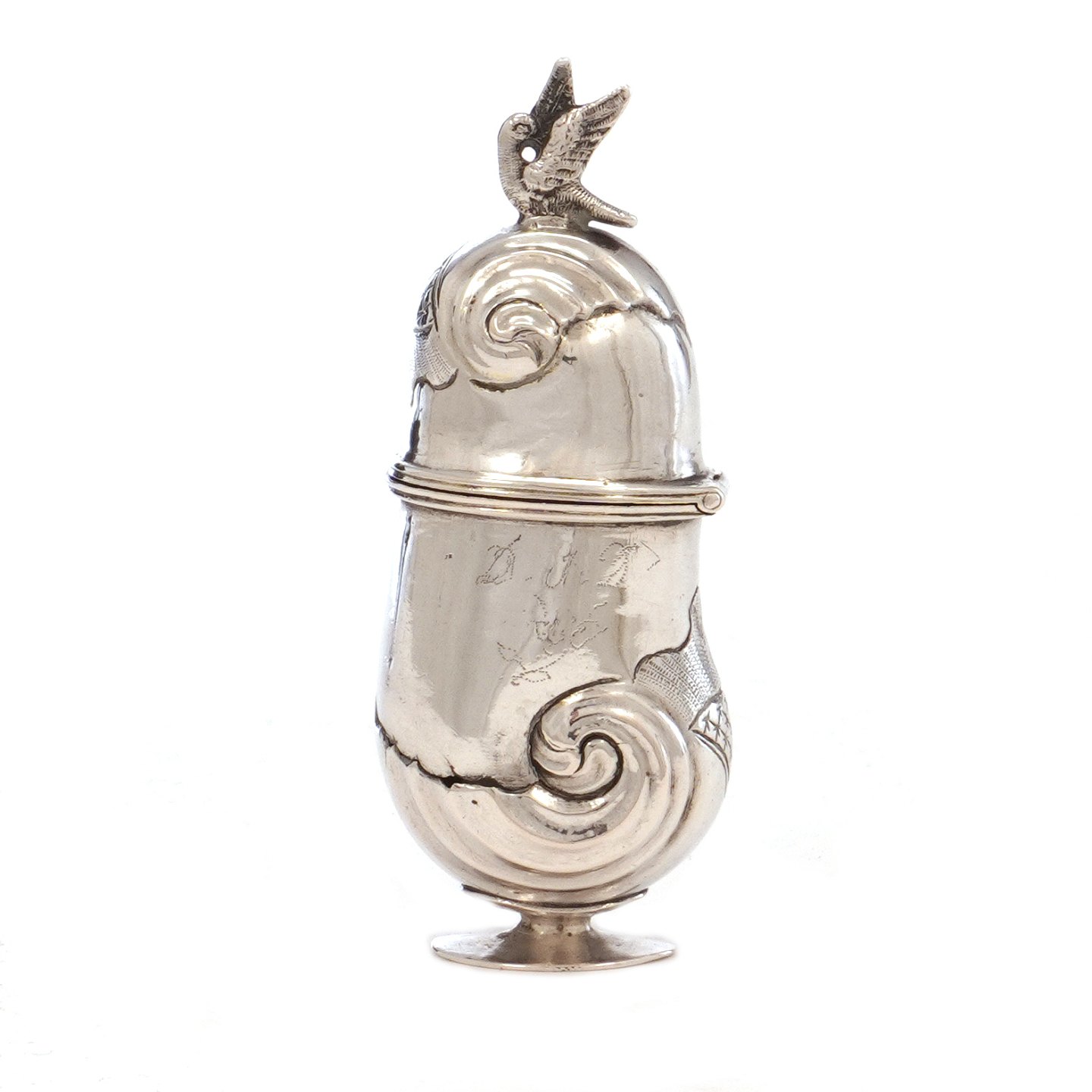 sølv. Indvendig forgyldt. Dateret 1778. H: 10,5cm.