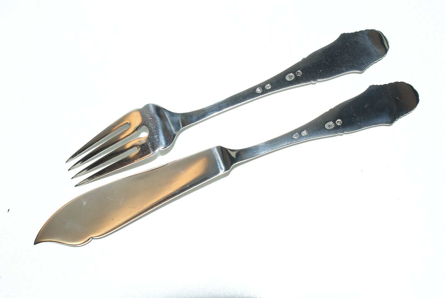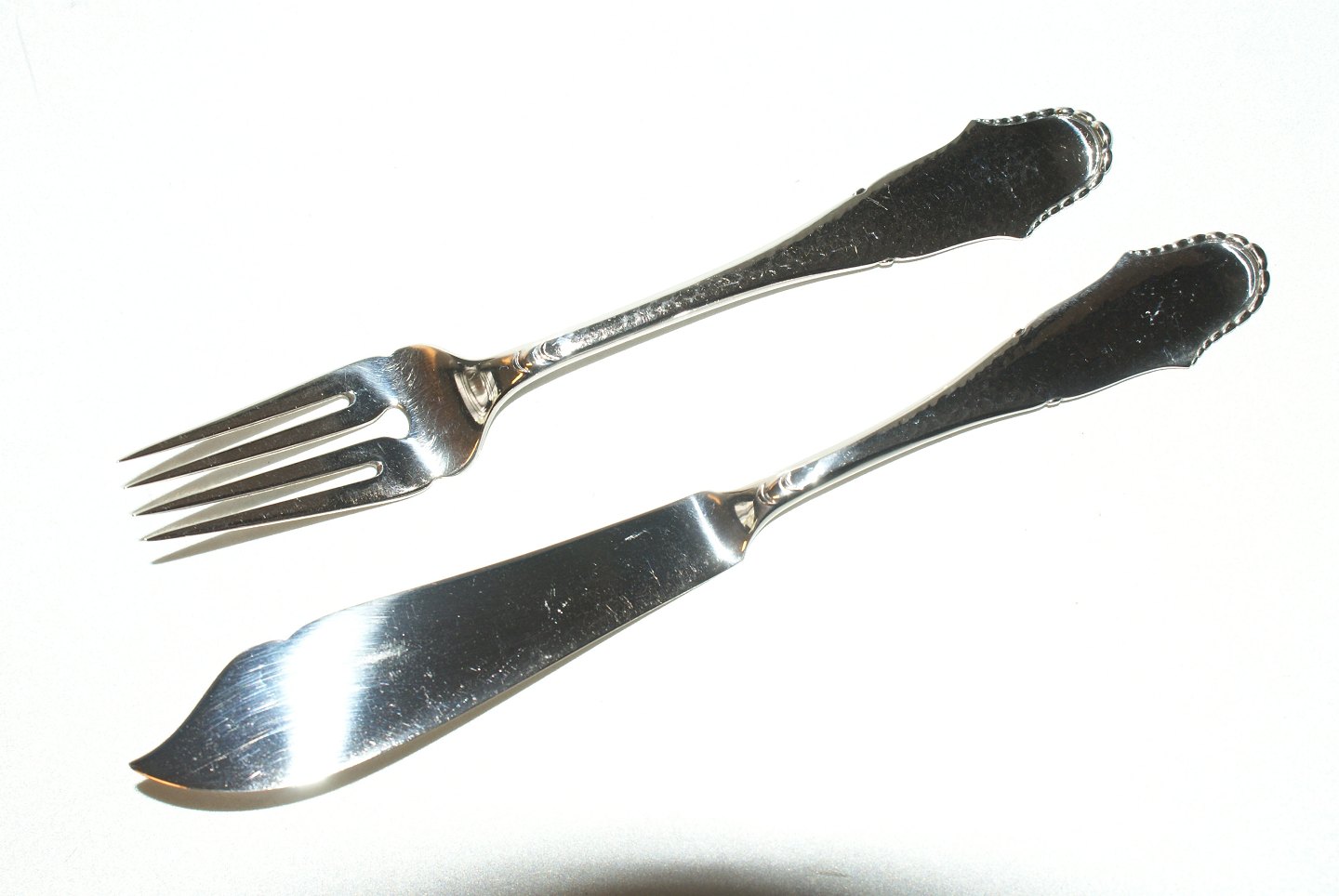 Christiansborg Fish cutlery, silver Toxværd. Fishing fork 17.5 cm. Fishing knife 20.5 cm. Nice and well maintained, All cutlery is new plastered https://www.antik-huset.dk/christiansborg-fiskebestik.html