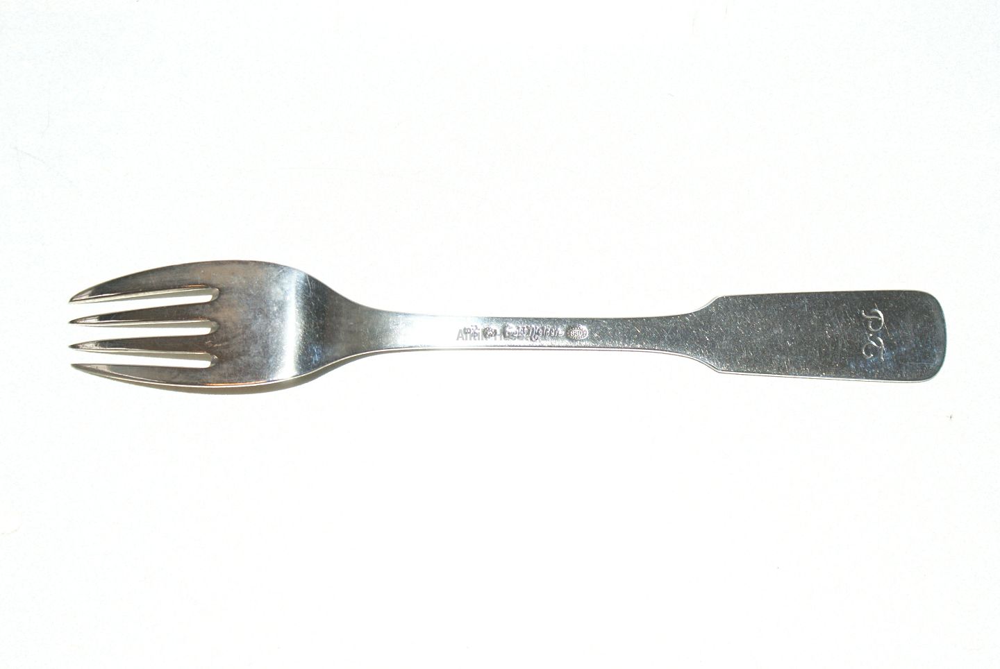 Evald Nielsen No. 8 Lunch Fork w / Initials Engraving Back PT or JT Length 18 cm. Well kept condition All flatware is polleret and packing in bag