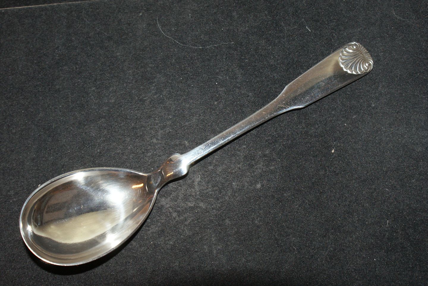 Jam spoon Mussel Silver Fredericia Silver, W & S.Sørensen. with more Length 15.5 cm. Polished and packed in a bag Used, Beautiful and well maintained.
