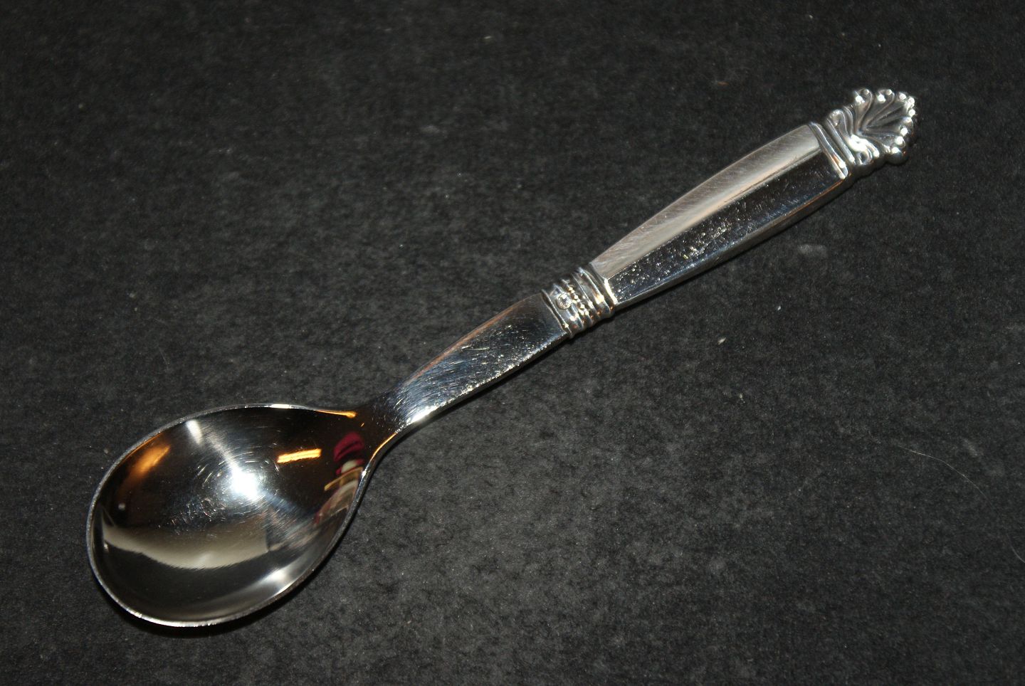 Egg spoon # 85 Queen / Acantus # 180 Georg Jensen Silverware Length 11.7 cm. Beautiful and well maintained condition. All cutlery is polished and packed in a bag