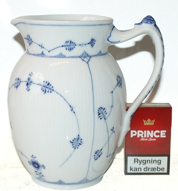 Stor Kongelig Musselmalet Riflet Mælke / Vand - kande. Indhold over 1½ liter. Produceret 1923-1934 Dek. nr. 1/162 2.Sortering Højde 20 cm. Diameter ca. 15 cm. Flot og velholdt stand.