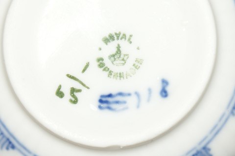 Kongelig Musselmalet Riflet, Creme / Senneps kop Produceret før 1923 Dek. nr. 1/ 65 1. sortering Størrelse: H 8,5 cm. Ø 6,5 cm. Flot og velholdt.