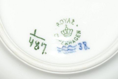 Kongelig Musselmalet Riflet Jernporcelæn, Lille Dyb Tallerken Produceret før 1923 Dek. nr. 1/487 Diameter 16,5 cm. Flot og velholdt stand.