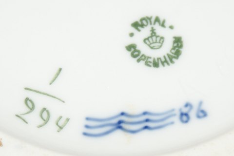 Sjælden Kongelig Musselmalet Riflet, Sellerikrukke / Vase Produceret 1899-1922 Modellør J.Jacobsen December 1893 Dek. nr. 1/294 2.Sortering Diameter 15,5 cm. Højde 16 cm. Perfekt stand