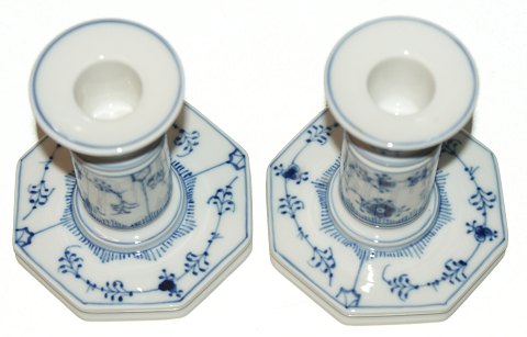 Kongelig Musselmalet Riflet, Høje Lysestager Dekorationsnummer 3303 Højde 10,5 cm. Base 10 cm. Flot og velholdt.