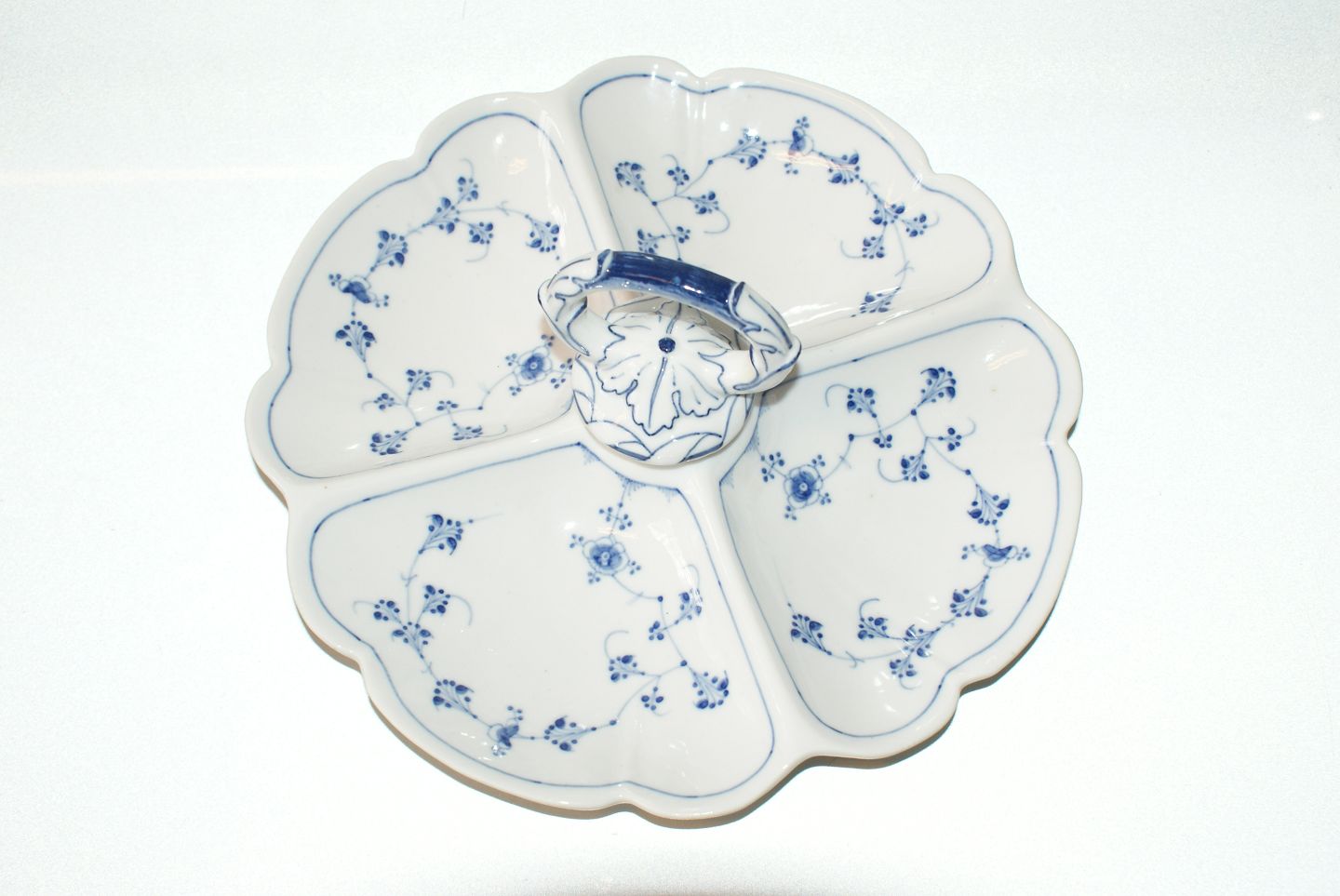 Royal Copenhagen Blue Fluted Plain, Cabaret dish with four spaces produced 1853-1877 Painter, Anton Larsen Dek. No (1/396) Factory first Diameter 30 cm. Perfect condition.