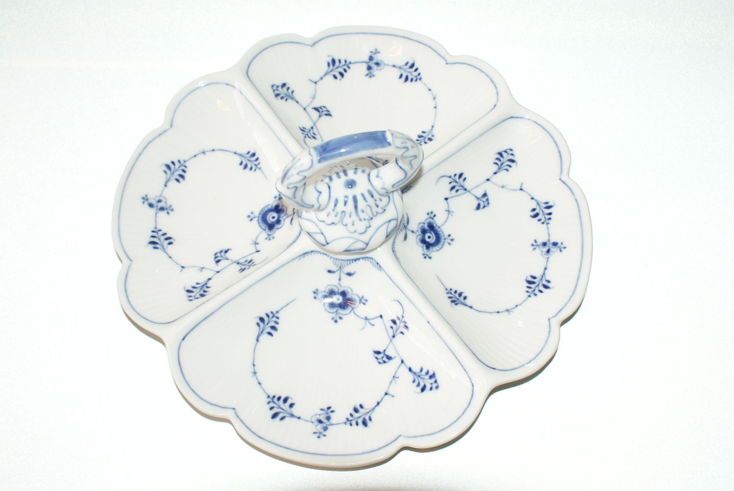 Kongelig Musselmalet Riflet, Cabaretfad med fire rum Dek. nr. 1/2130 1. Sortering Diameter 30 cm. Perfekt stand.