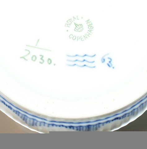 Kongelig Musselmalet Riflet, Mælkekande 3/4 Pot Produceret 1898-1922 Dek. nr. 1/2030 1.Sortering Højde 18 cm. Perfekt stand.