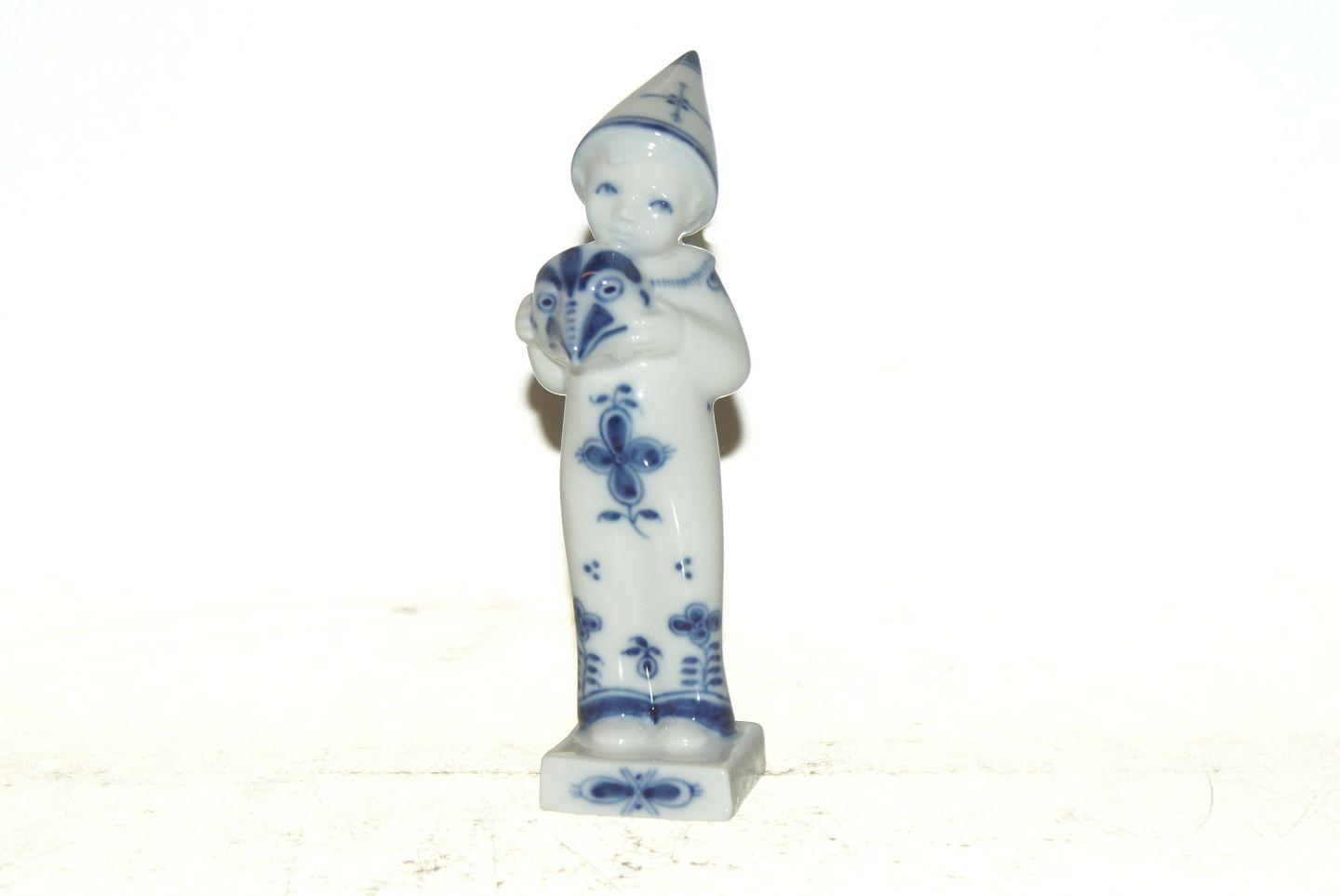 Sjælden Kongelig musselmalet riflet, Dreng med maske Produceret 1969-1974 Dekorationsnummer 1/4794 Højde 14,5 cm. Perfekt stand.