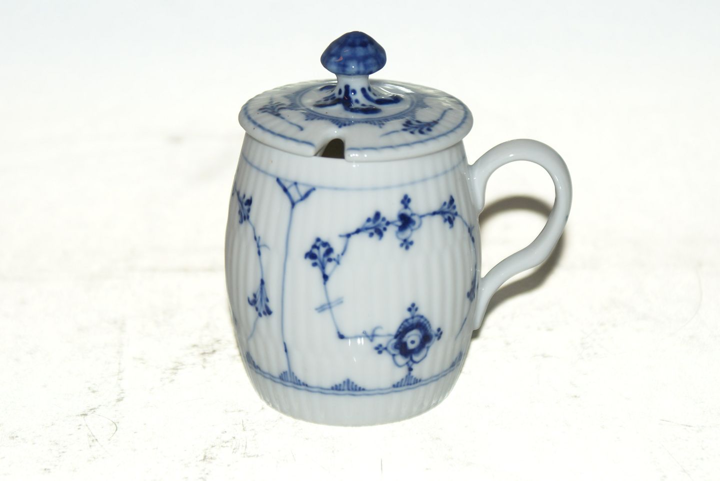 Sjælden Kongelig Musselmalet Riflet, Senneps kande Dekorationsnummer 1/137 Produceret mellem 1898-1922 1.Sortering Højde 10,5 cm. Flot og velholdt stand.