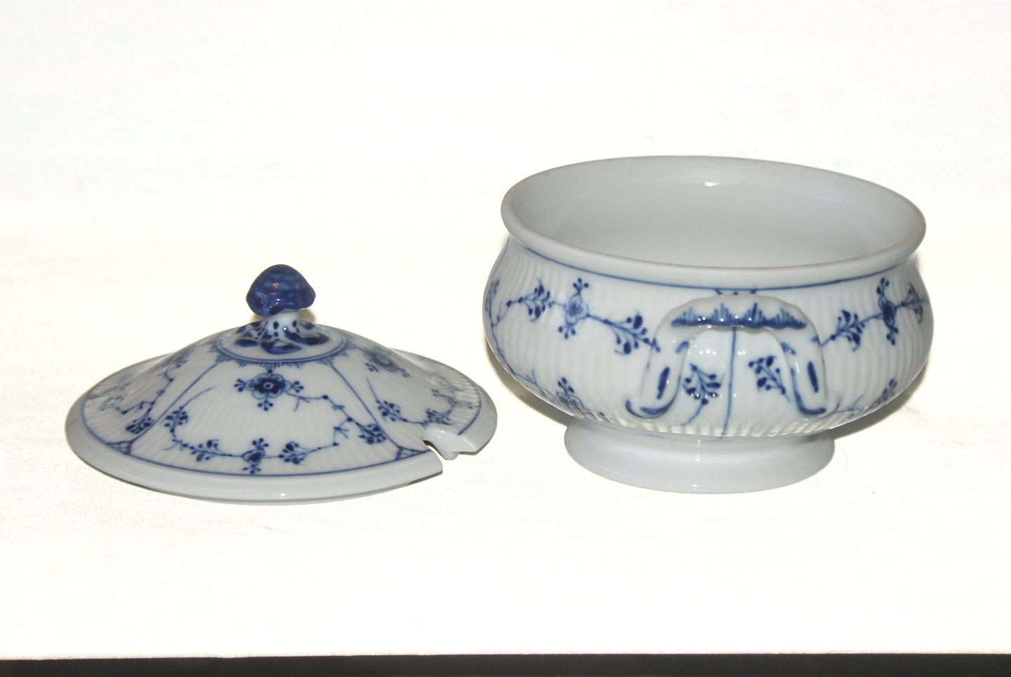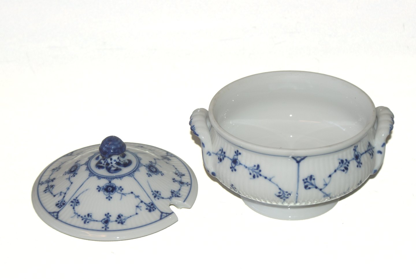 Royal copenhagen mussel riflet sovseterrin Skål dek nr 1/491-42 Låg Dek nr 1/205-42 Årgang 1898-1922 Model før år 1884 Højde 13,5 cm Pæn og velholdt stand https://www.antik-huset.dk/royal-copenhagen-mussel-riflet-sovseterrin-skal.html