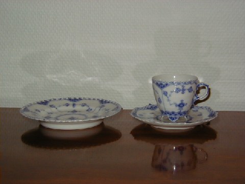 Kongelig Musselmalet Helblonde, Tallerken, Hel flad Dek. nr. 620 Diameter 19 cm. 3.Sortering Flot og velholdt stand