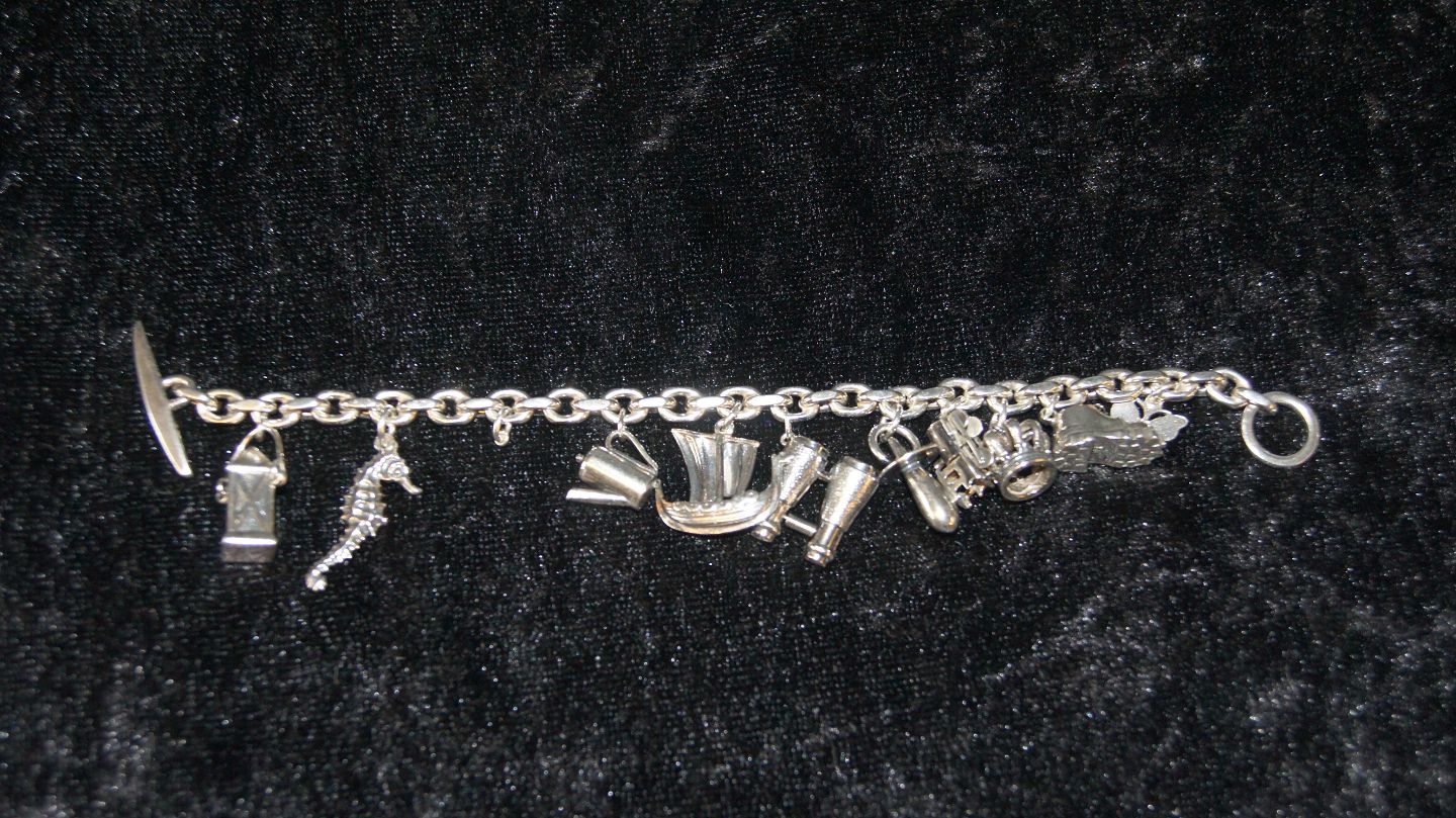 Anchor Bracelet in sterling silver with 10 Charms
