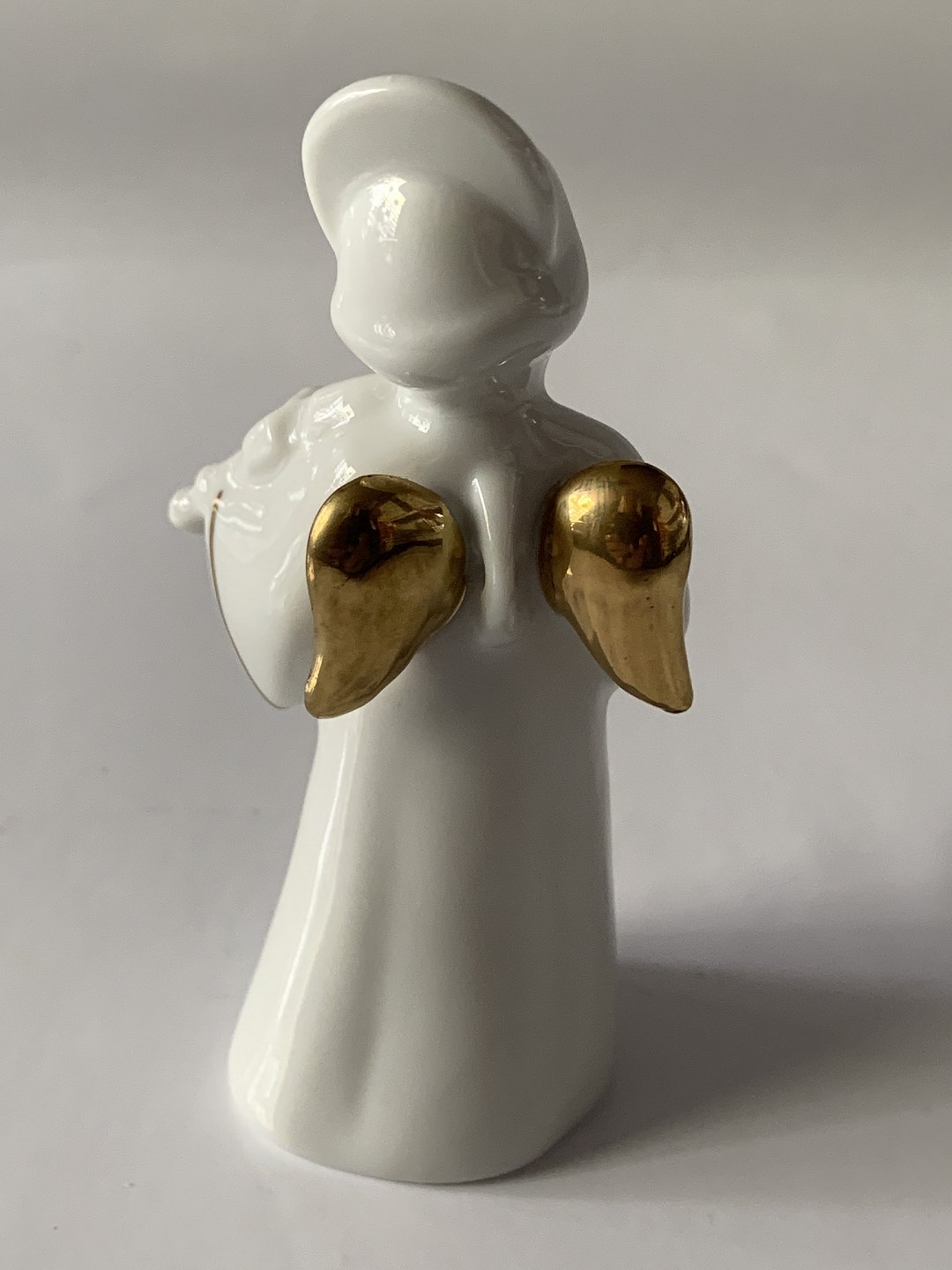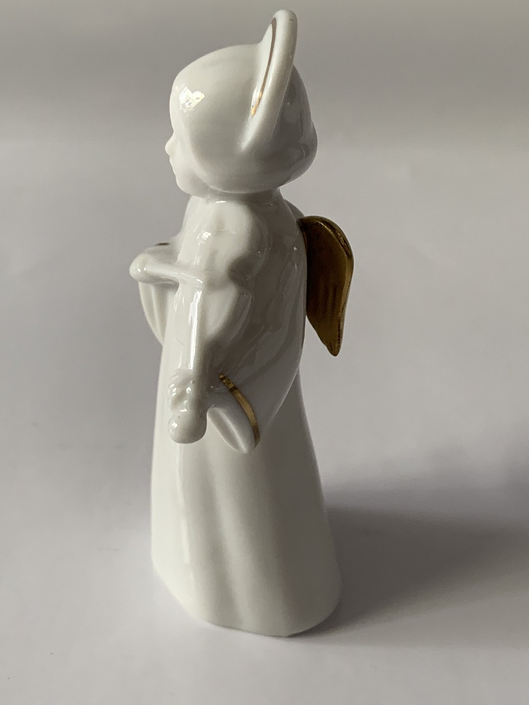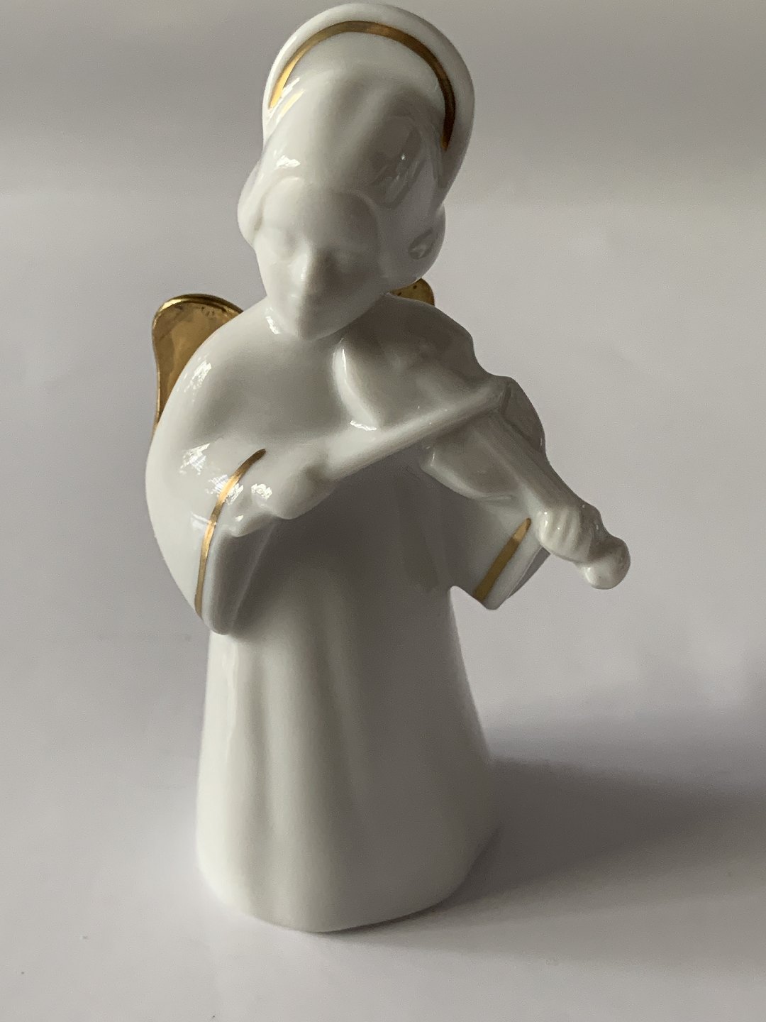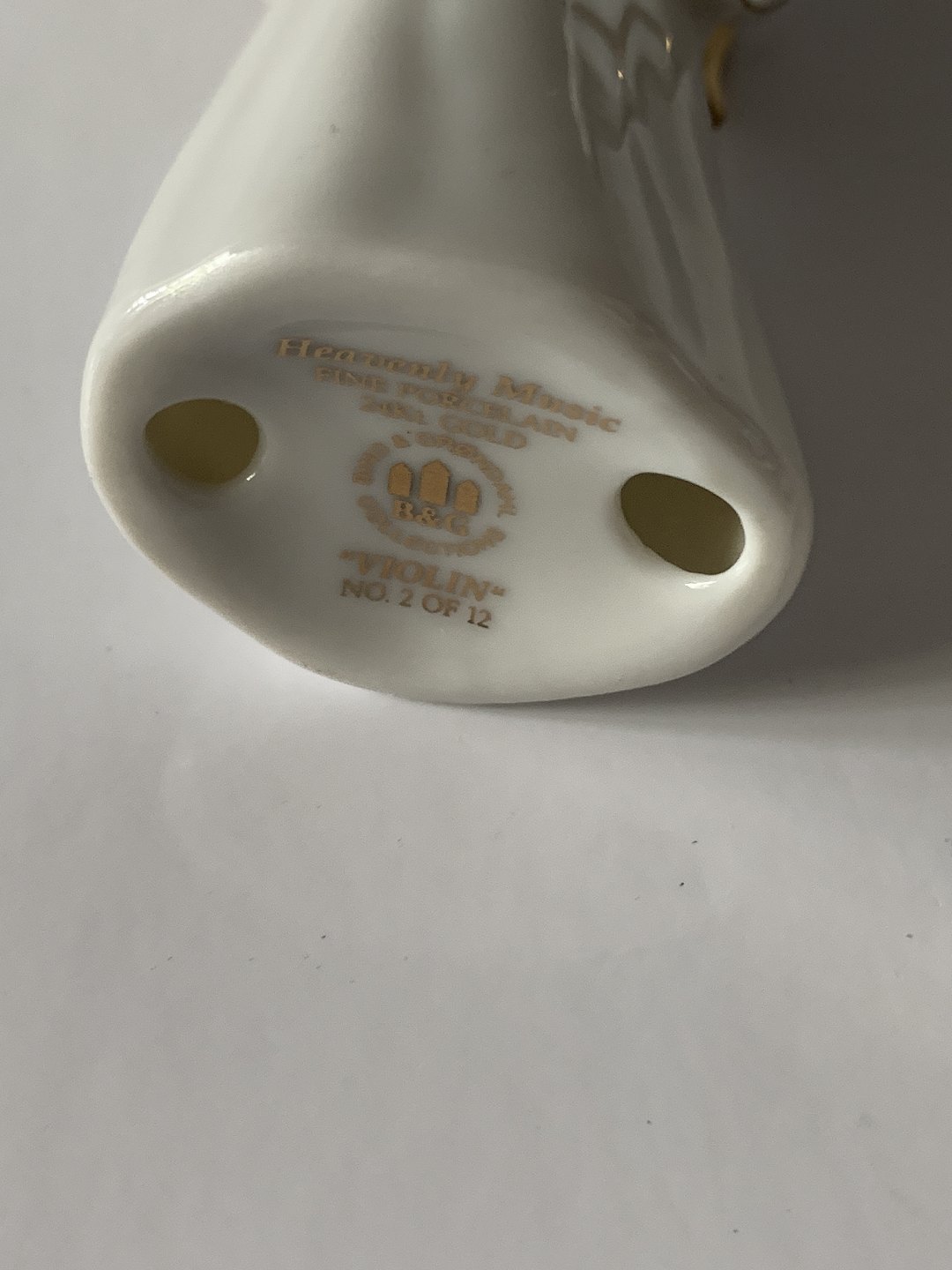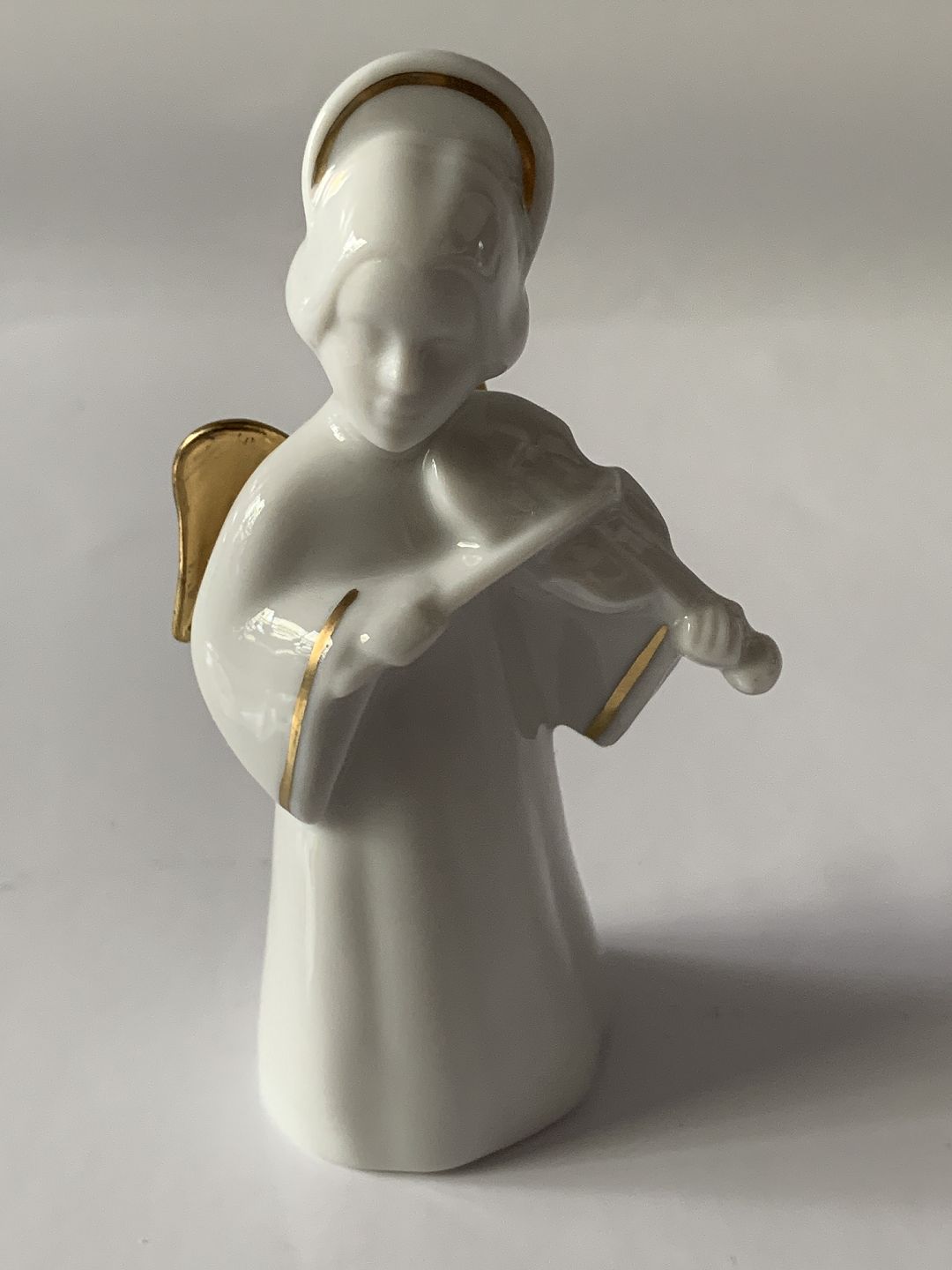 Bing & Grøndahl. Heavenly Music. Violin No. 2 af 12. Hvid porcelæns engel med guld staffering og guldvinger (24 karat). Serien hedder " Engel med Instrumenter" og består af 12 stk.
