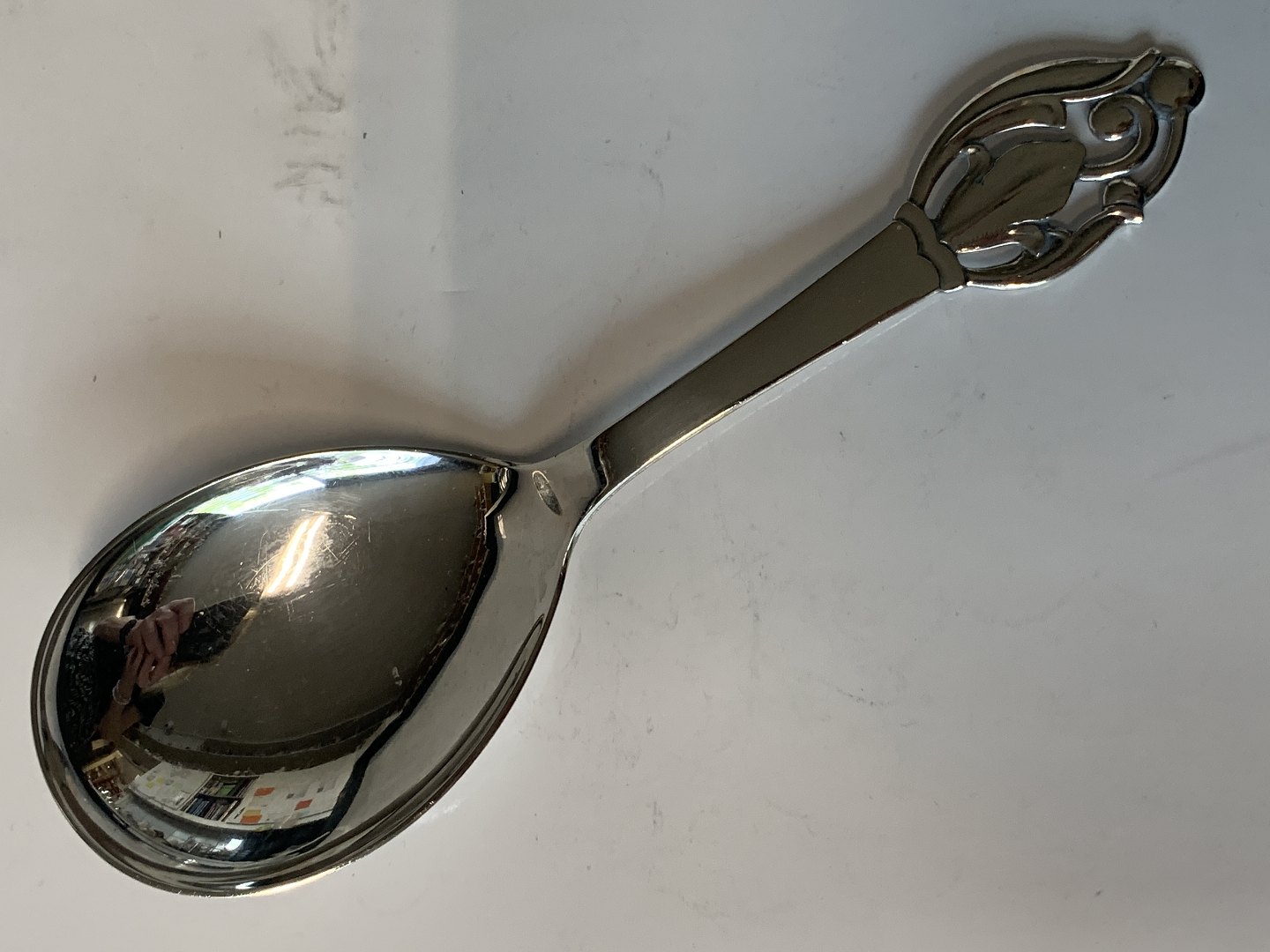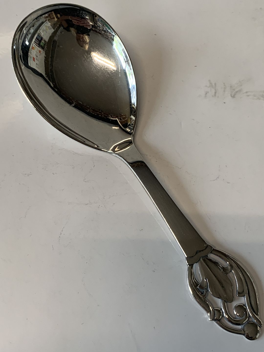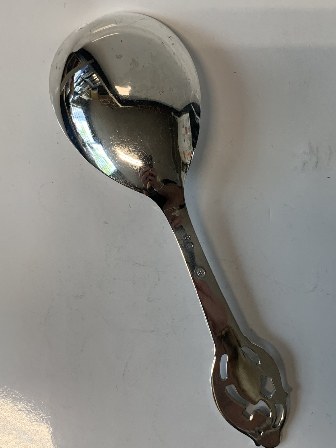 Kartoffel / Serveringsske i sølv. Længde 21,3 cm. Stemplet 3. Tårne Produceret År.1950 Velholdt stand Alt bestik polleret og pakke i pose