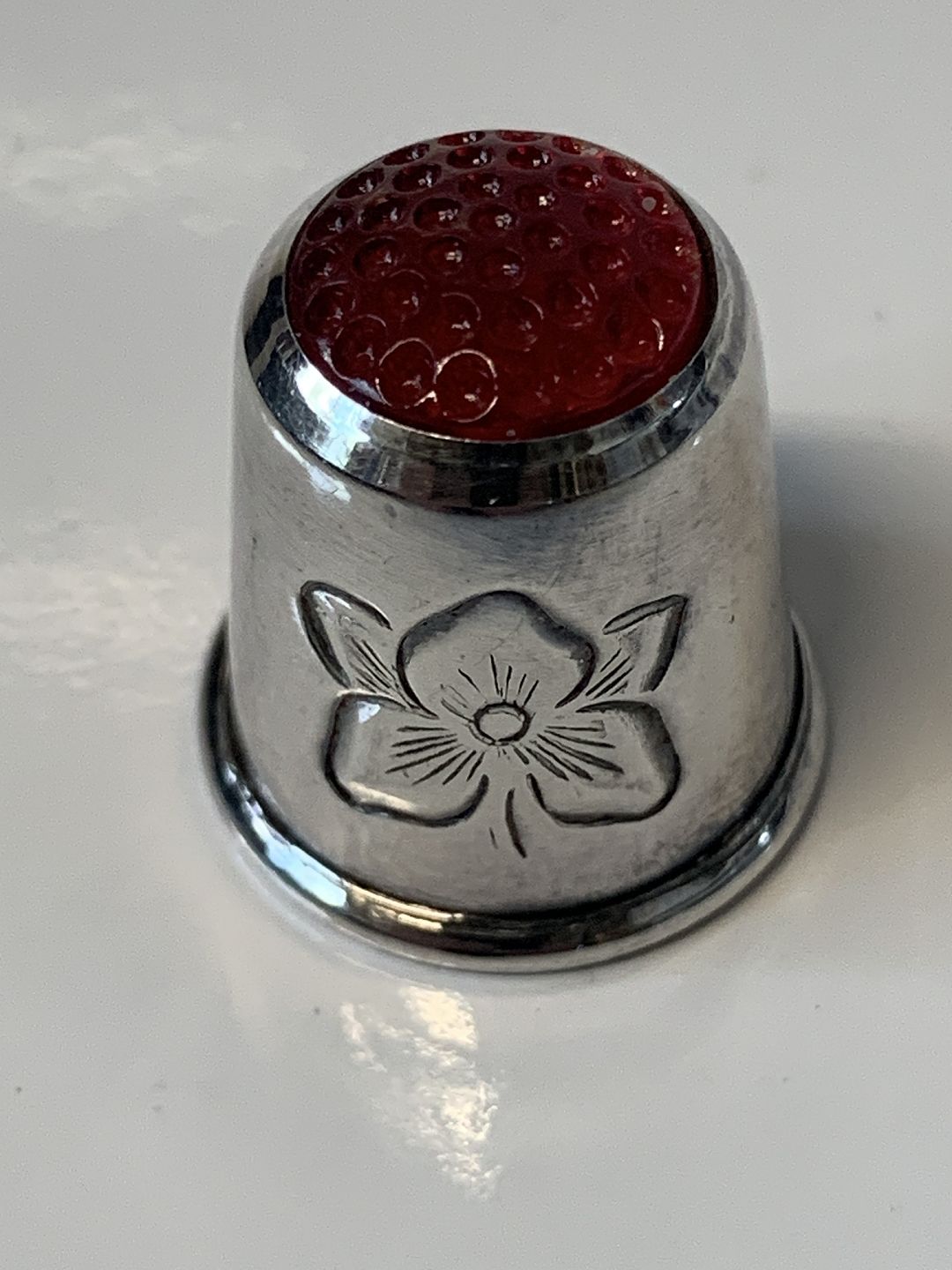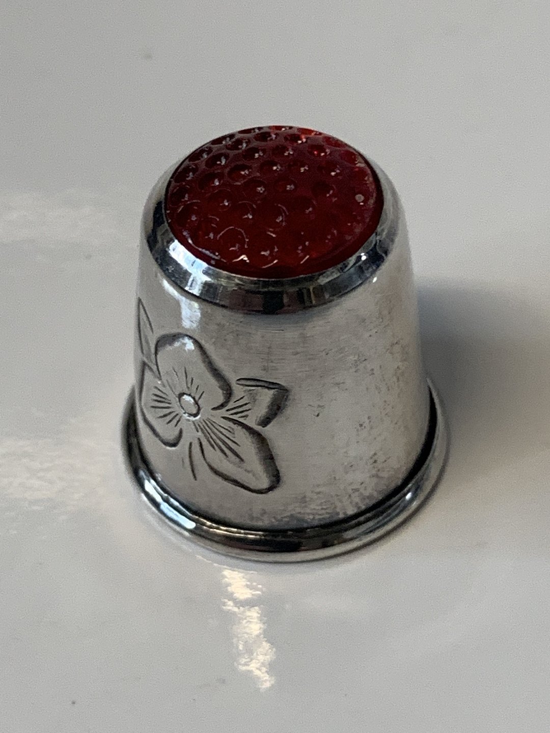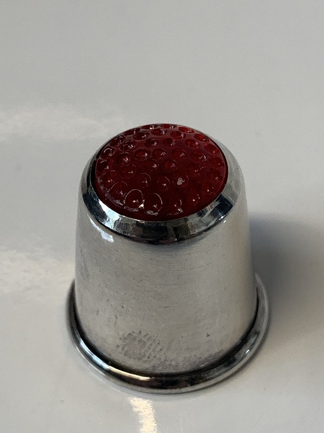 Fingerbøl af sterling sølv med rød flus.