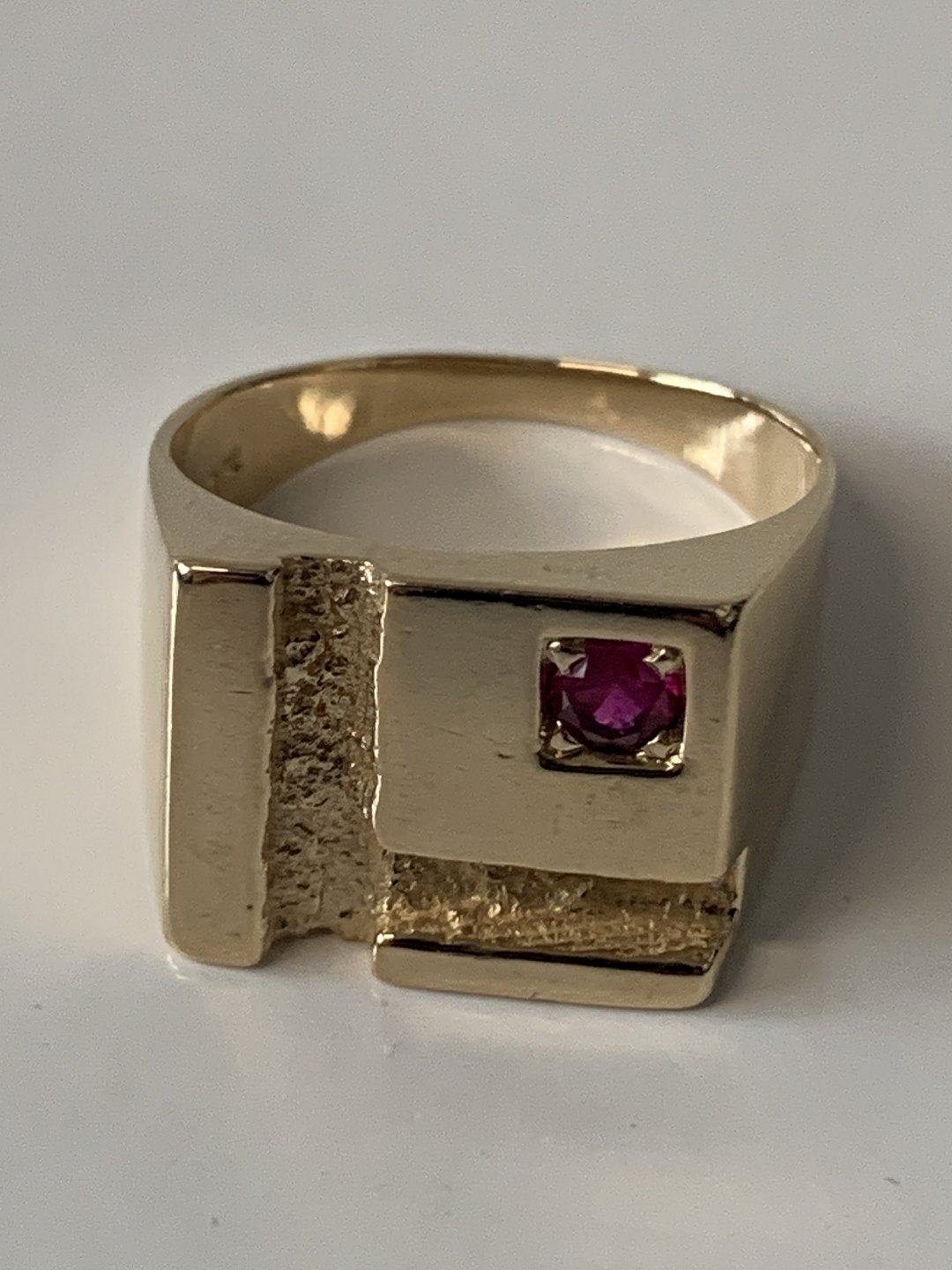 14 Karat Signetring med rød Rubin.