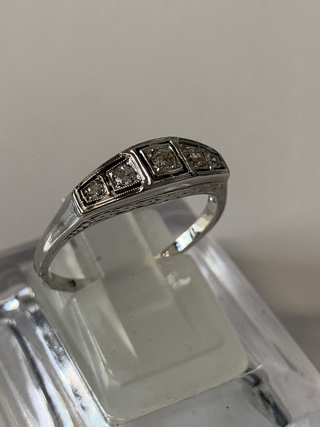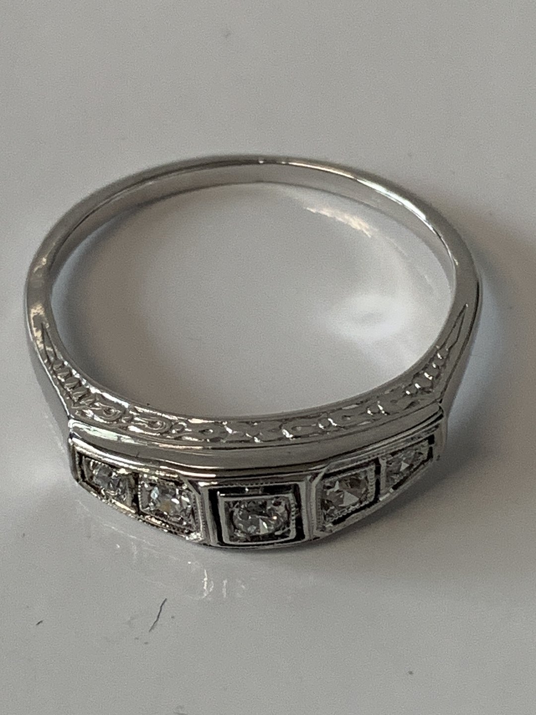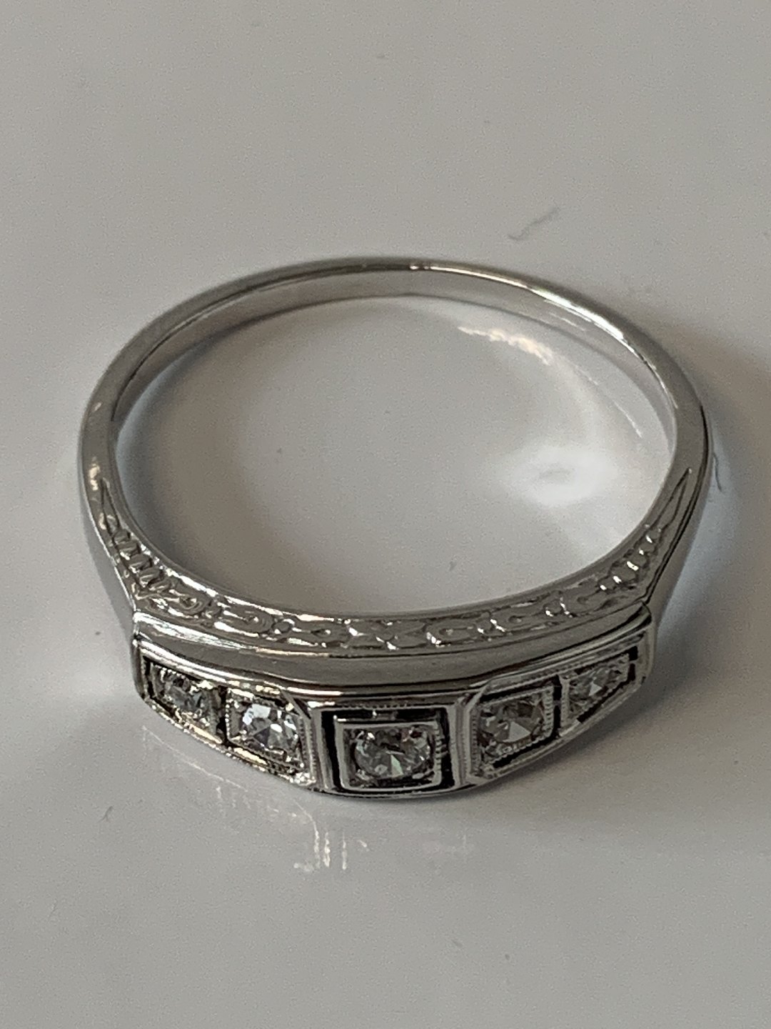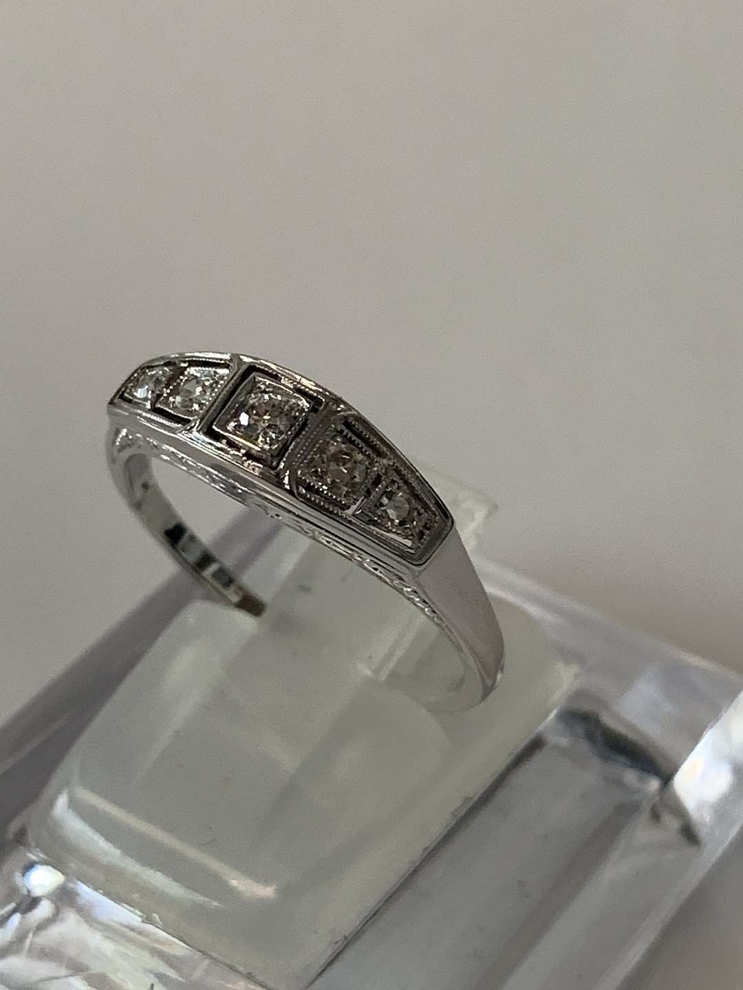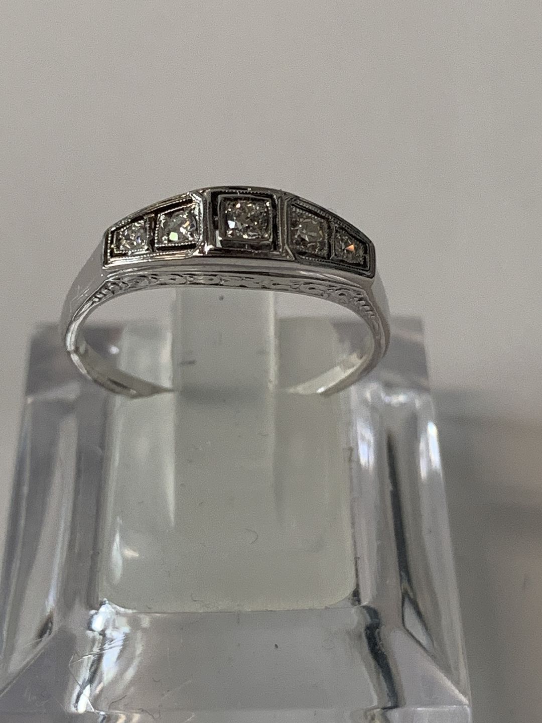 Diamant ring i 14 karat hvidguld med blank overflade og 5 brillantslebne diamanter
