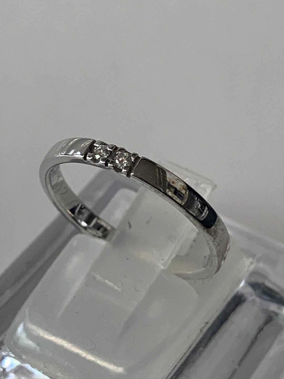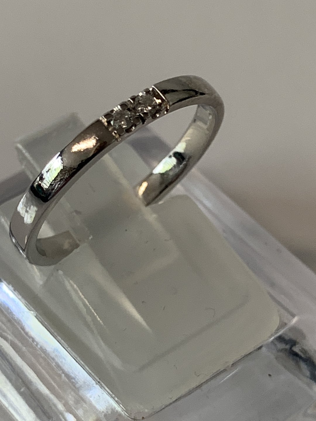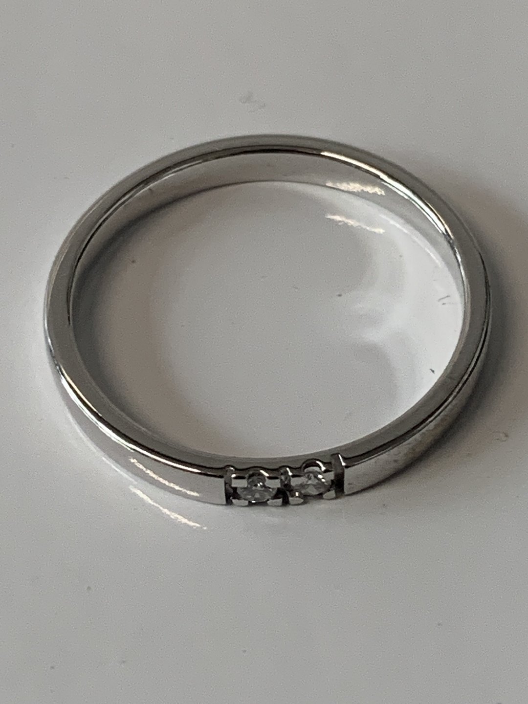 Diamant alliancering i 14 karat hvidguld med blank overflade og 2 brillantslebne diamanter
