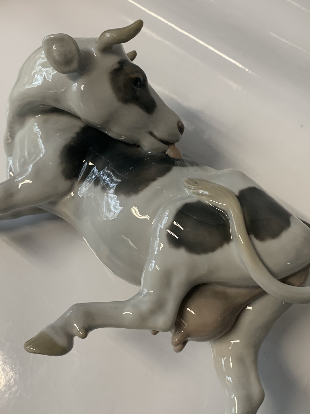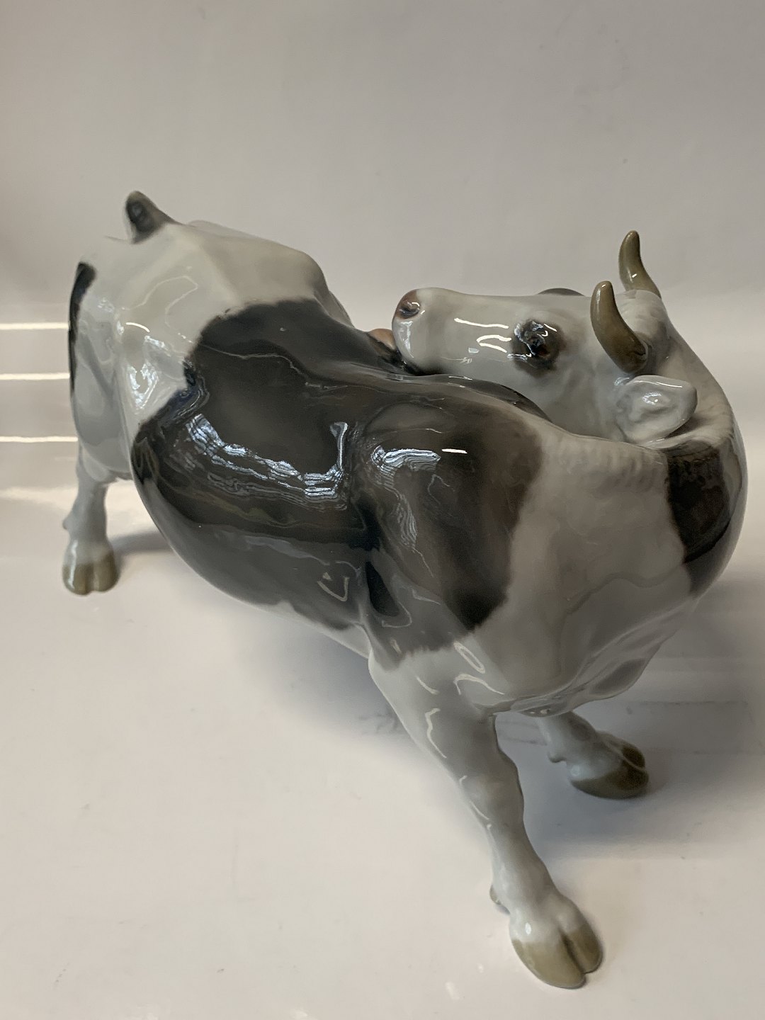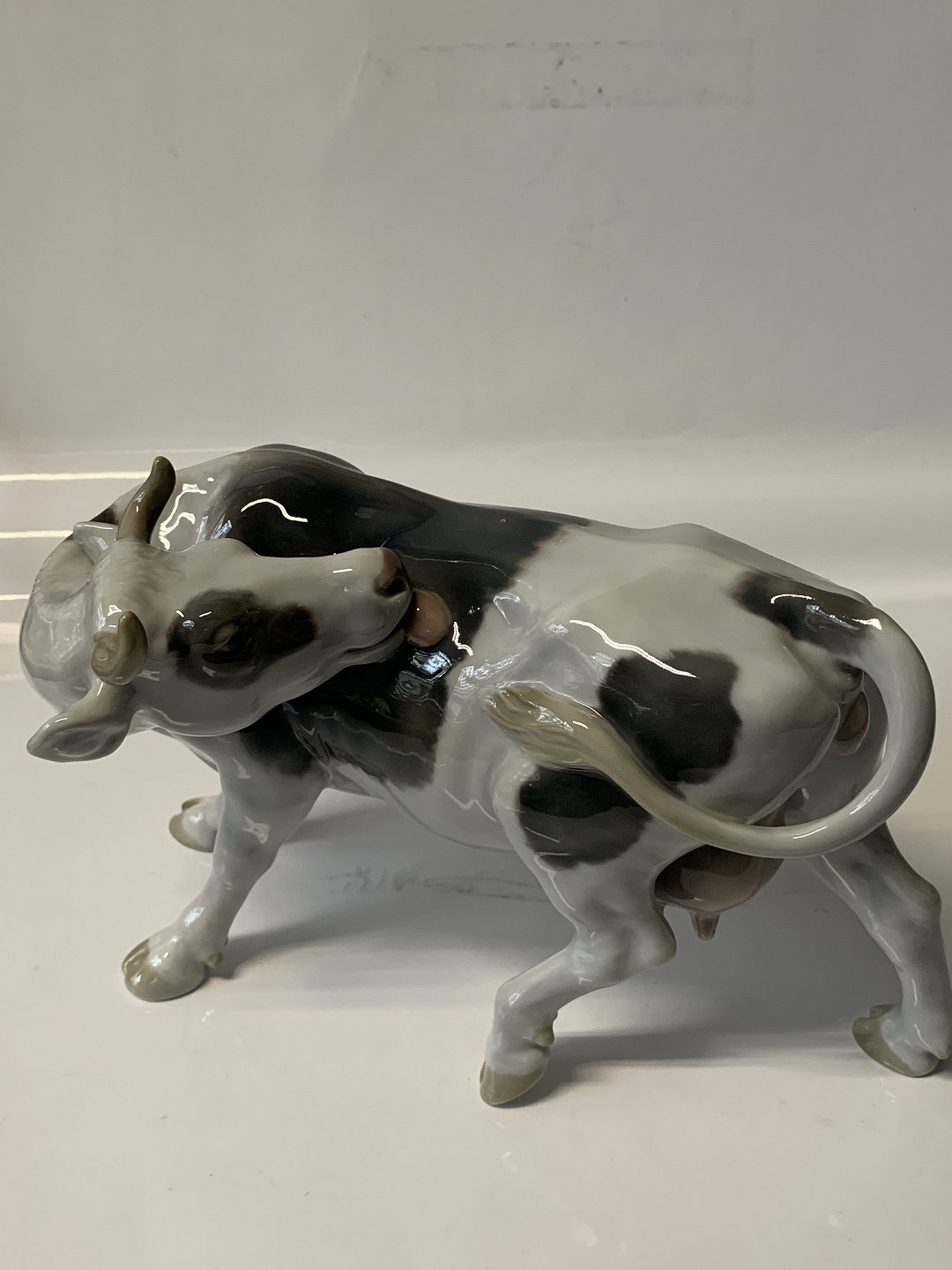 Bing & Grondahl B&G Cow licking its side.