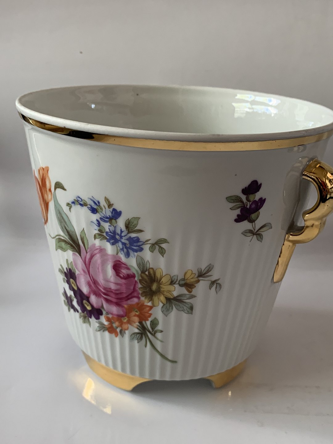 Urtepotteskjuler med blomstermotiv / 4 fødder.