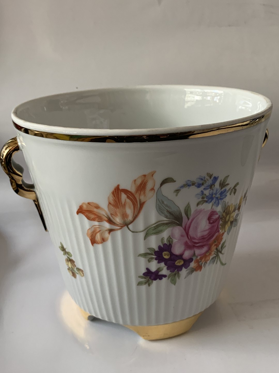 Urtepotteskjuler med blomstermotiv / 4 fødder.