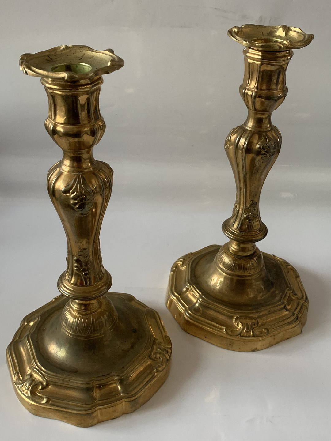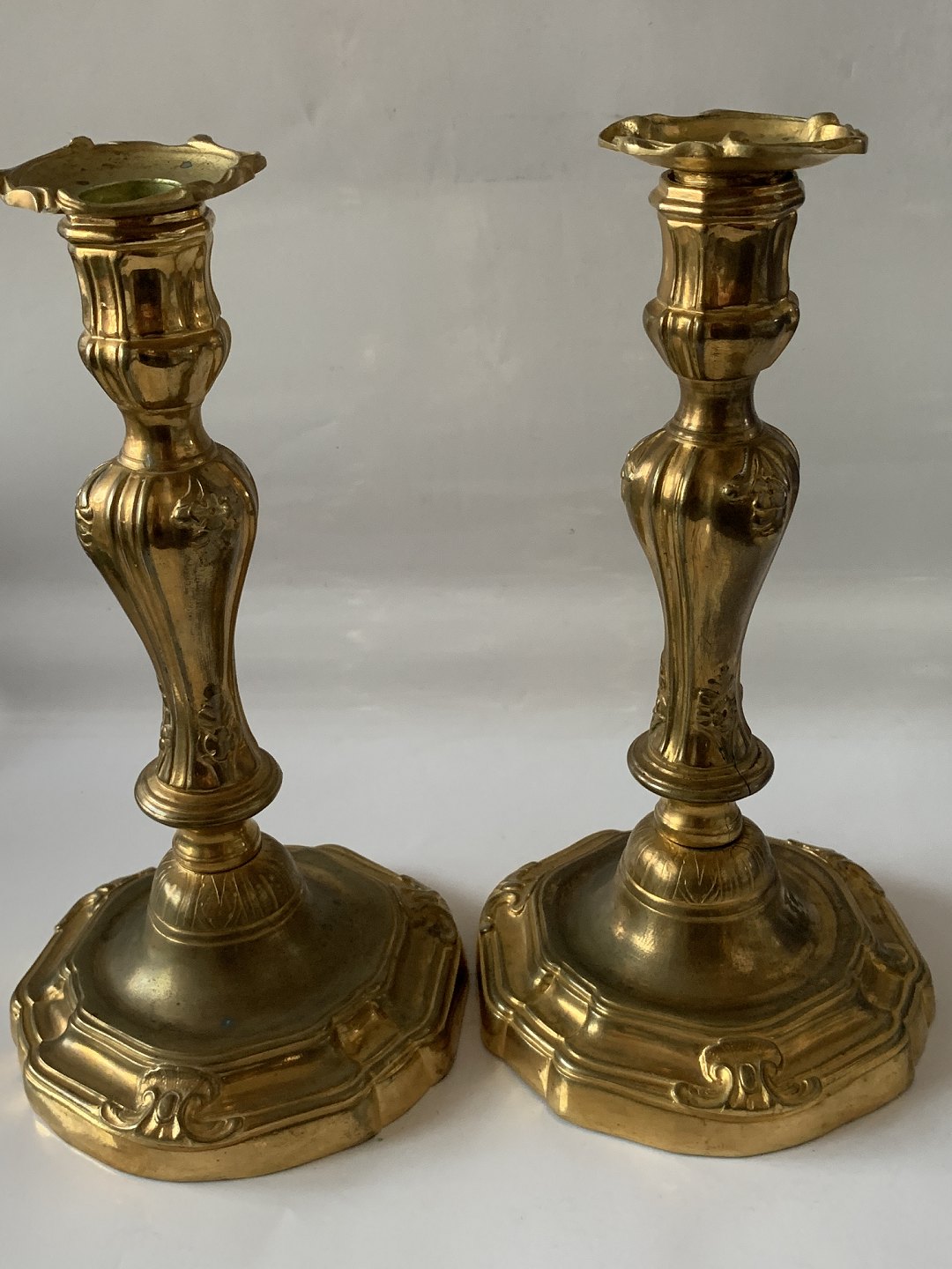 Et par antikke af Bronze med kantet fod. Højde. 26 cm. Med almindelig brugsslidtage. Pæne og velholdte.