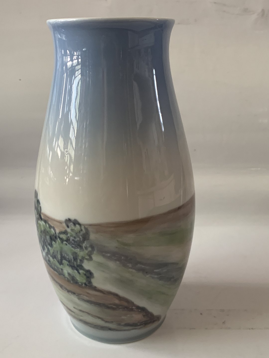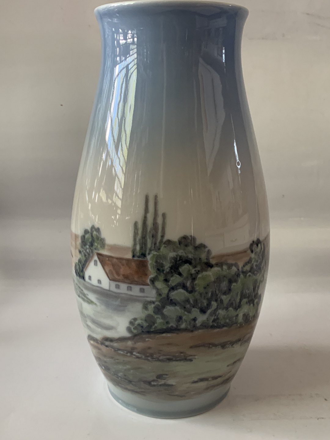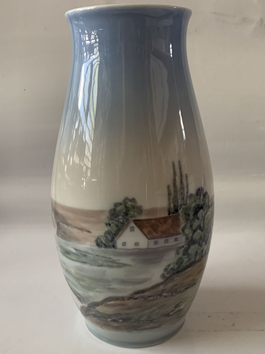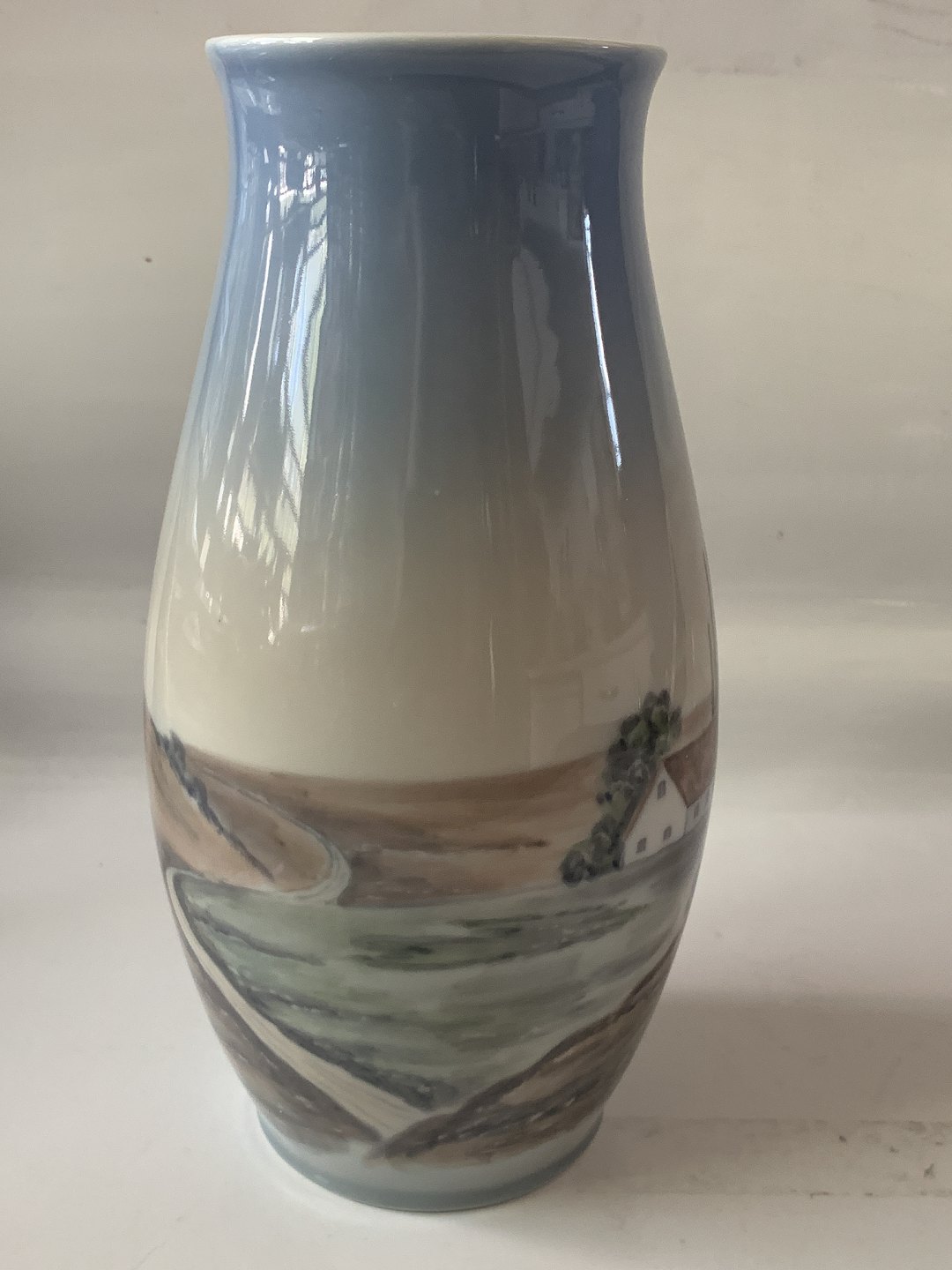 Bing & Grøndahl Vase, Motiv hus og Vej i Landskab. Dekorationsnummer 602-5249. 2. sortering. Højde 21 cm. Perfekt stand.