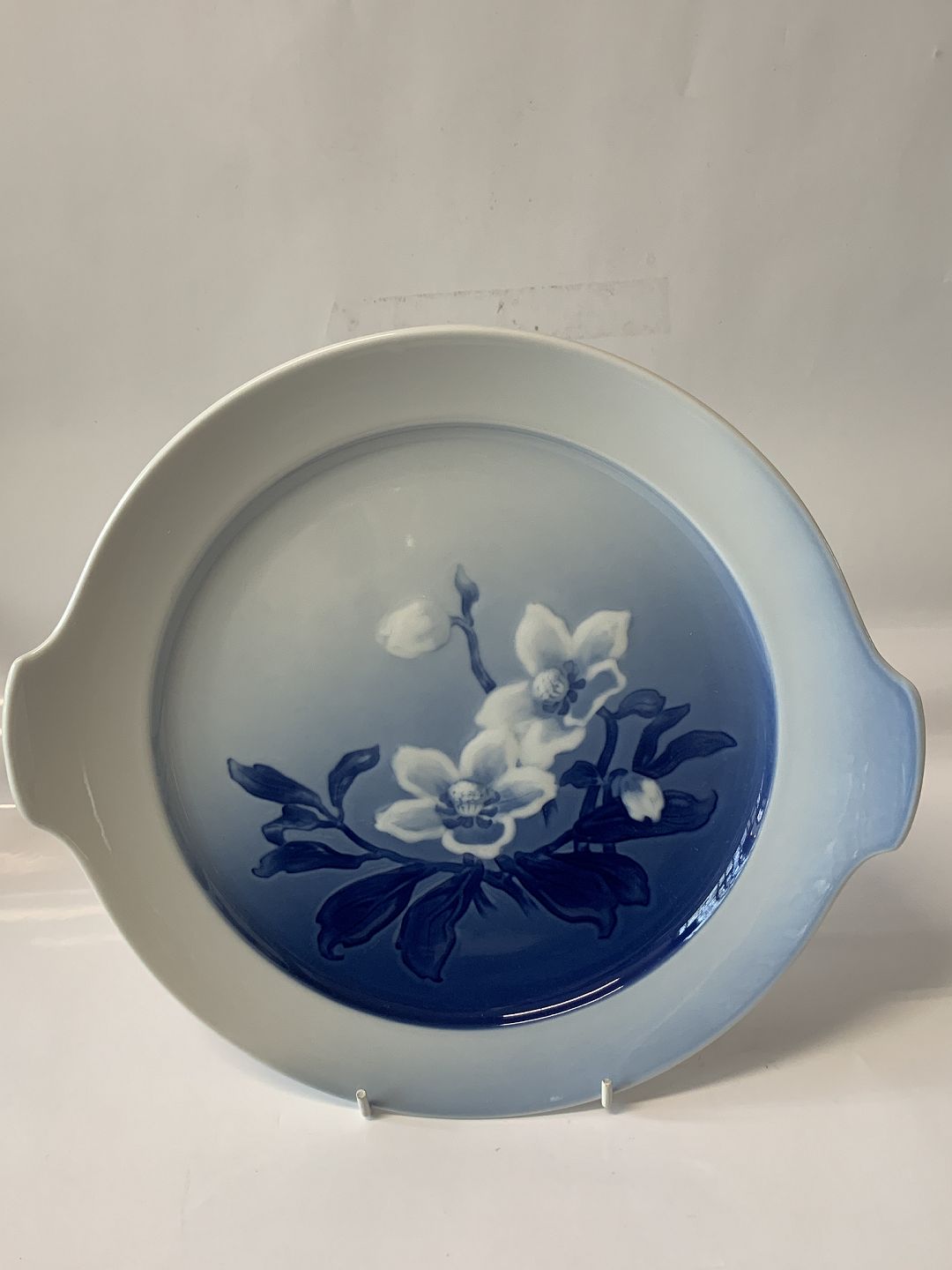 Bing & Grondahl Christmas Rose, large round cake dish with handle. Decoration number 101. Diameter 25.4 cm. Beautiful and well-maintained condition