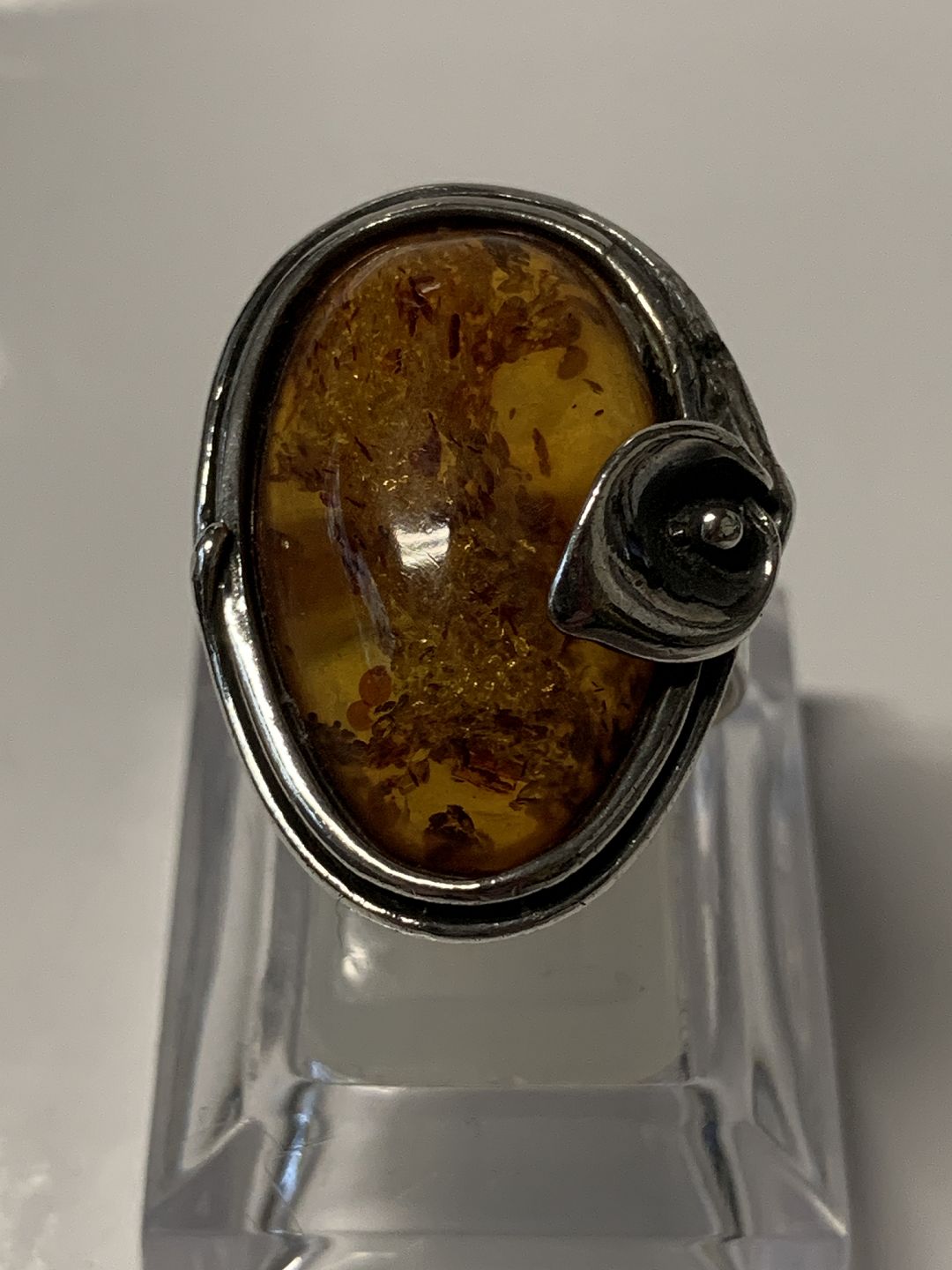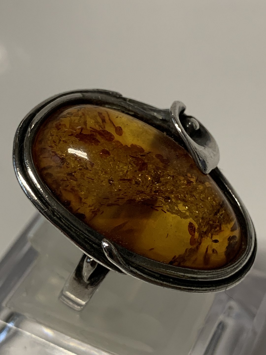 Vintage Damering i sterlingsølv med indlagt rav. Størrelse. 56. Stemplet NP 925S. Pæn og velholdt. Se desuden vores store udvalg af Sølvringe her: https://www.antikhuset.net/katindex.asp?kukat=5780