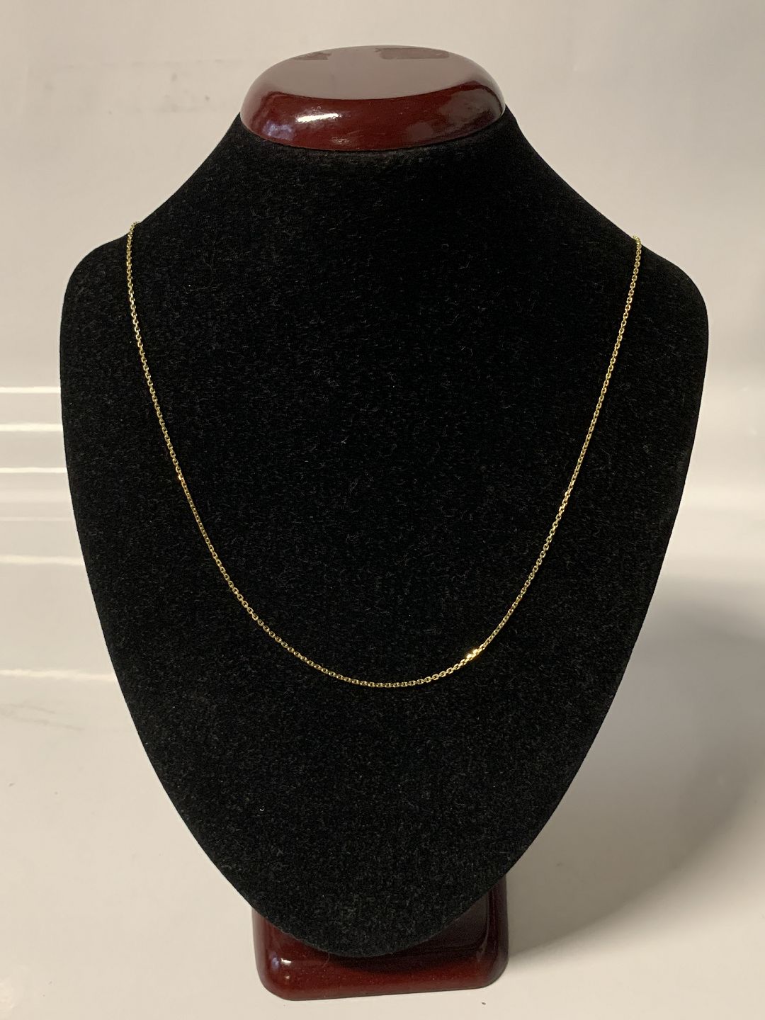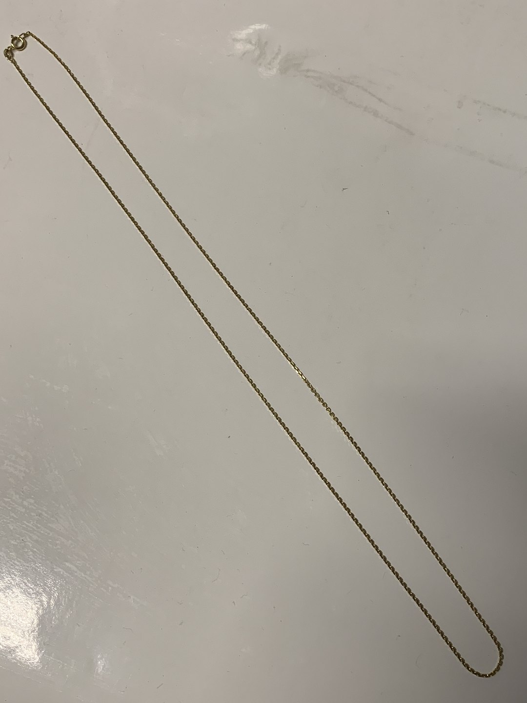 Flot guldkæde i Anker facet, smedet i 14 karat guld. Kæden er elegant og simpelt udformet. De små led gør at kæden falder blødt om halsen, og er behagelig at bære. Da kæden er tynd, vil den passe til mange forskellige vedhæng. Vi har hos Antikhuset et bredt udvalg af vedhæng til guldkæder. Dette udvalg kan du se her: https://www.antikhuset.net/katindex.asp?kukat=12179
