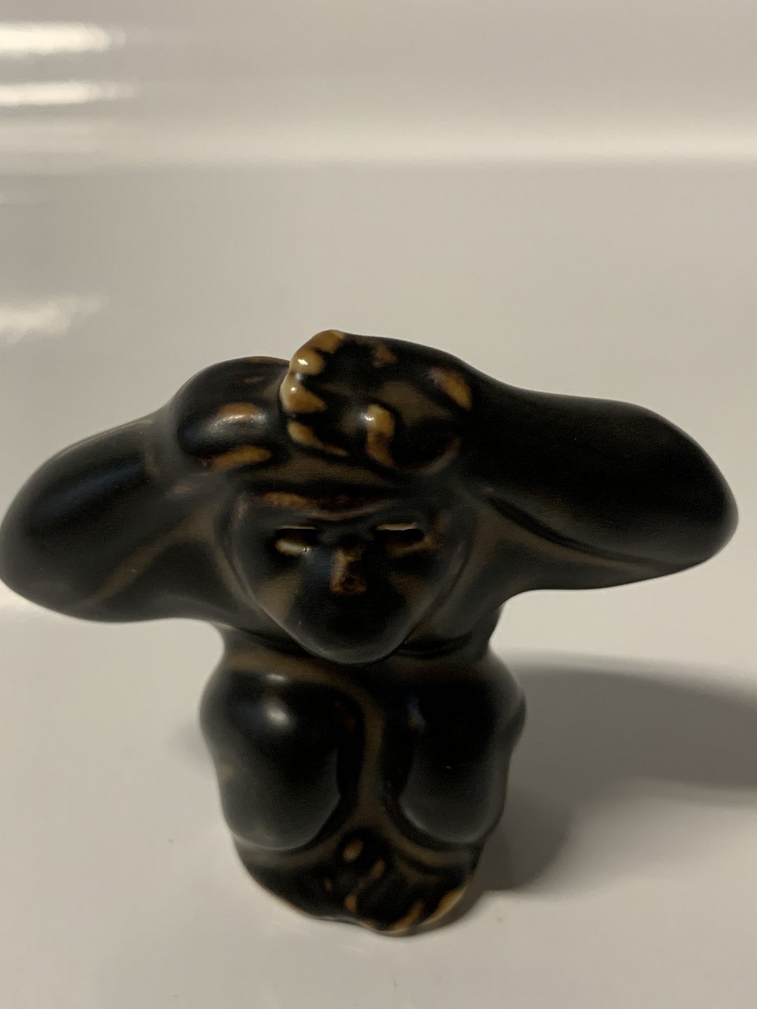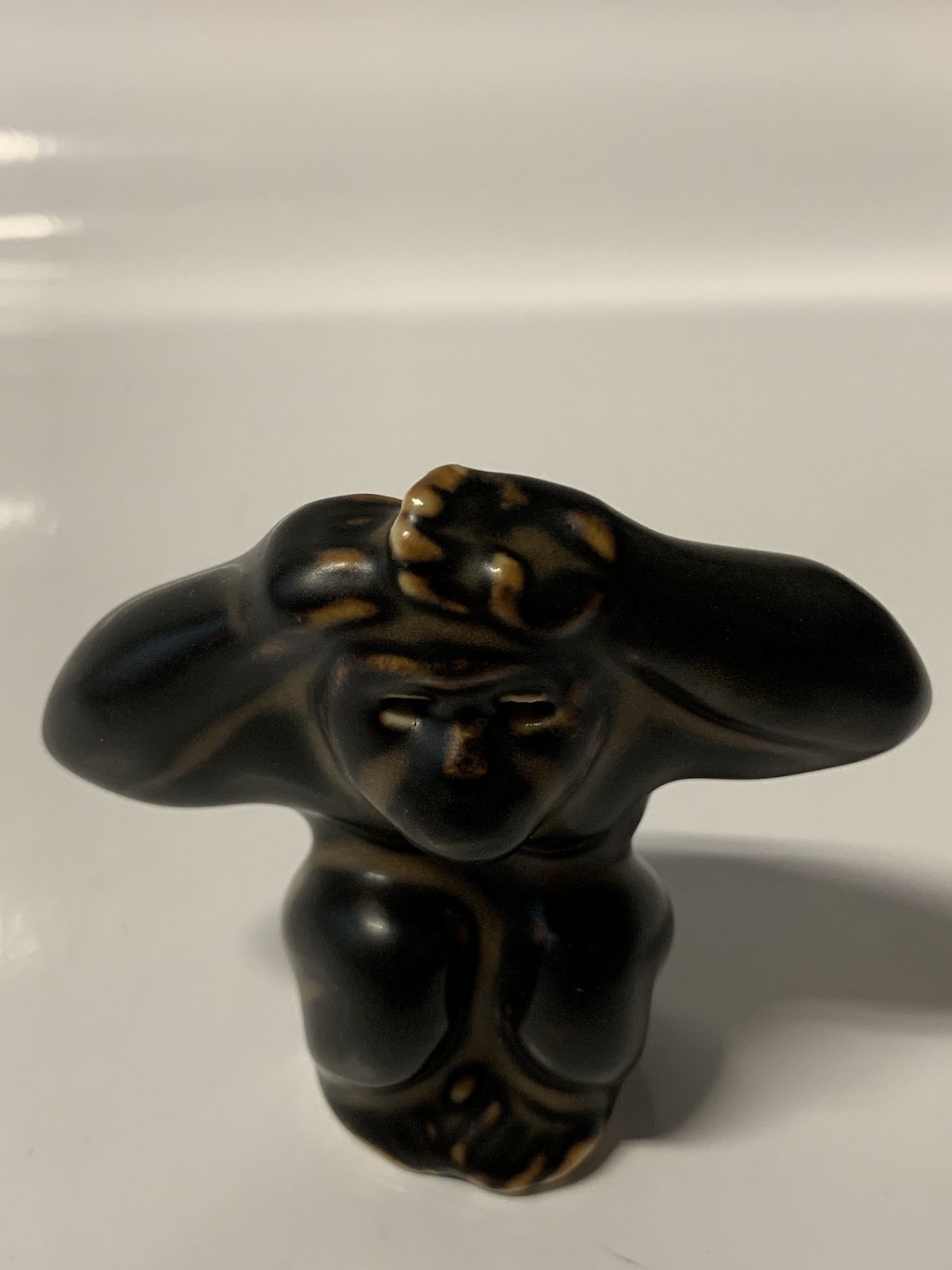 Royal Copenhagen Stentøjs figur, Abe med armene på hovedet Design; Knud Kyhn Dekorationsnummer 20217 1.Sortering Højde 6 cm. Perfekt stand.