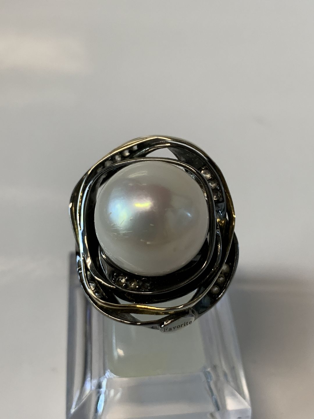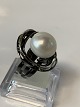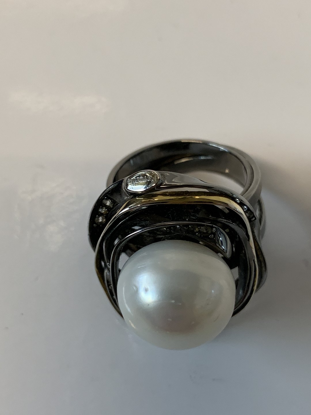 Designers Favorite ring med Perle og sten, Sterling sølv Sort Rhodium og 18 karat guld belægning Ring Størrelse 60. Sten: Ferskvandsperle White CZ, RD 3AAA Stempel: 925 Danish Perfekt stand