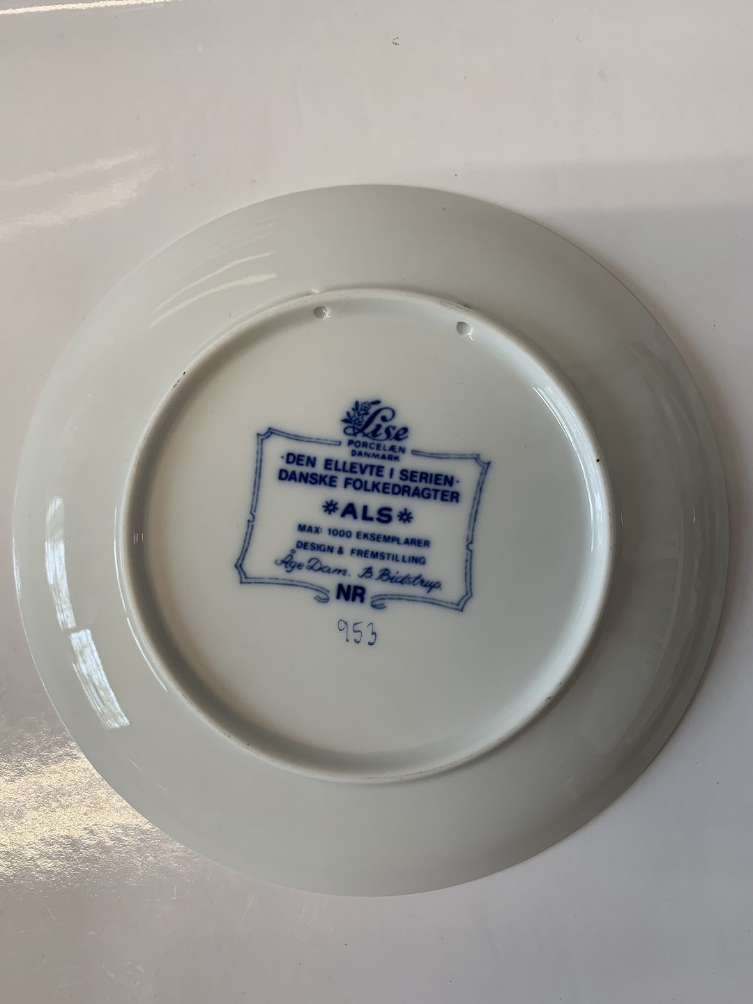 Platte Sønderborg Als, Danske Folkedragter. Dekorationsnummer 953. Diameter 19,4 cm. 1.sortering. Perfekt stand.