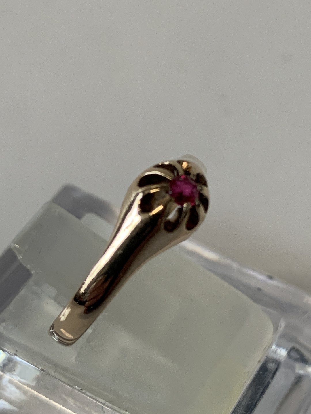 Smuk og elegant guldring med en rød sten i 14 karat guld, Ringen er meget anvendelig til hverdagsbrug.