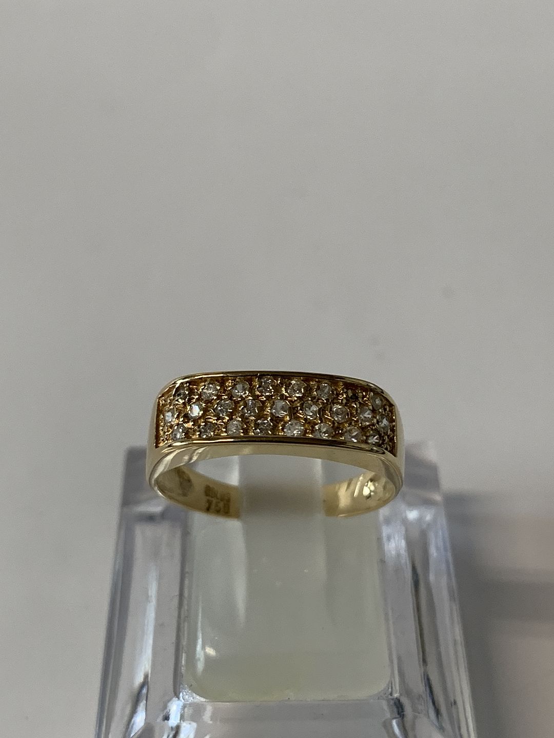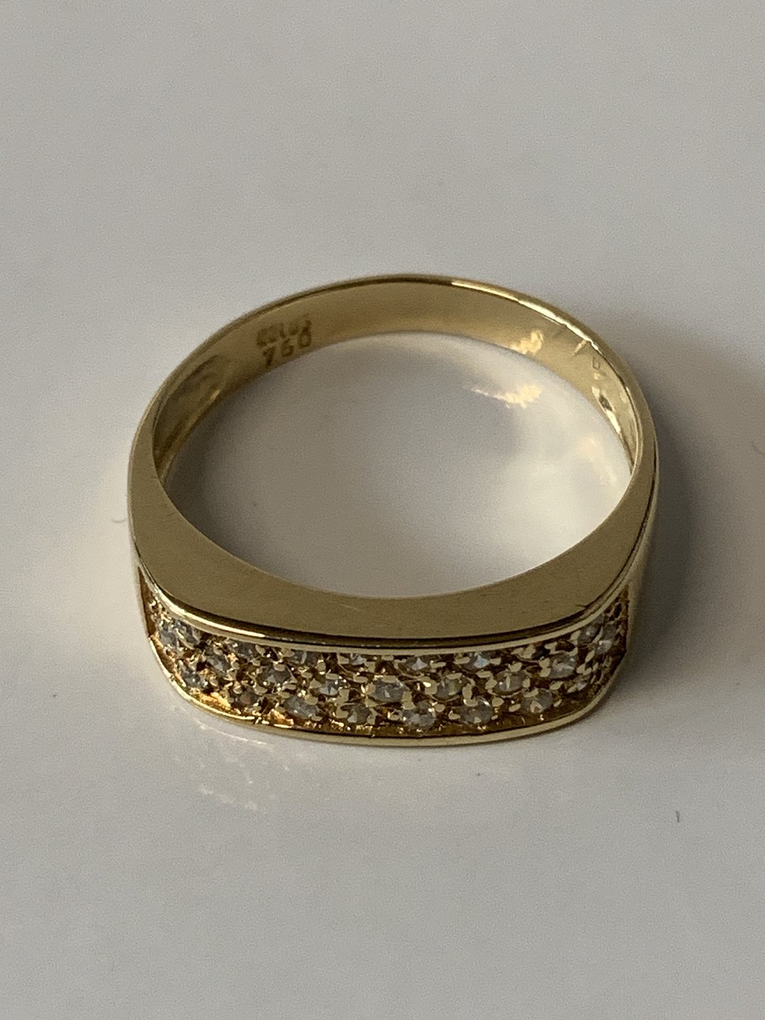 Smuk damering i 18 karat guld, med små hvide sten, stemplet 750 Størrelse 55