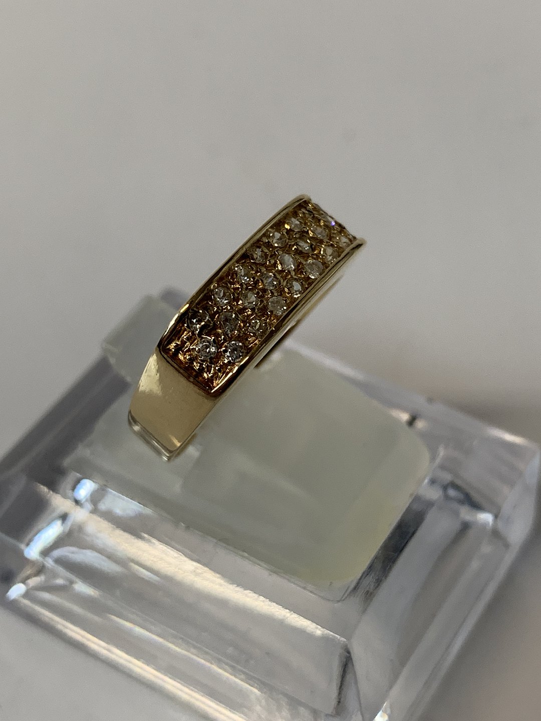 Smuk og elegant guldring med fine hvide sten i 18 karat guld, i enkelt design. Ringen er meget anvendelig til hverdagsbrug, eller til festlige lejligheder. Da ringen er i et enkelt design, er det let at kombinere denne ring med andre guldringe.