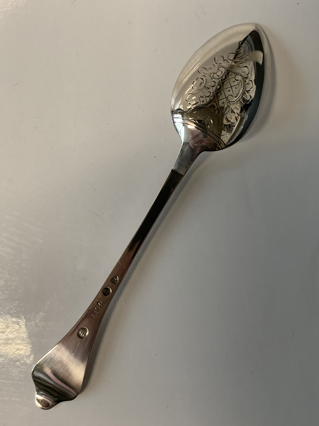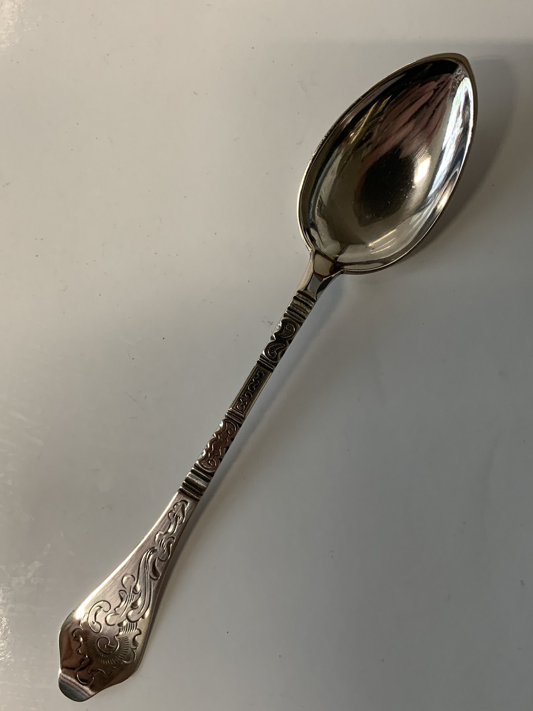 Antik Rococo, Sølv Middagsske med gravering på bag
