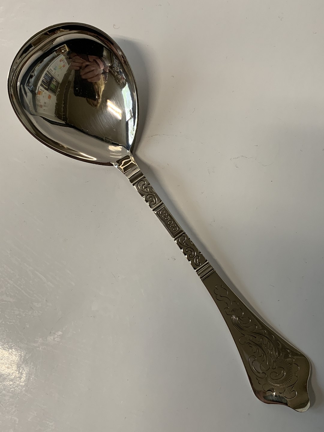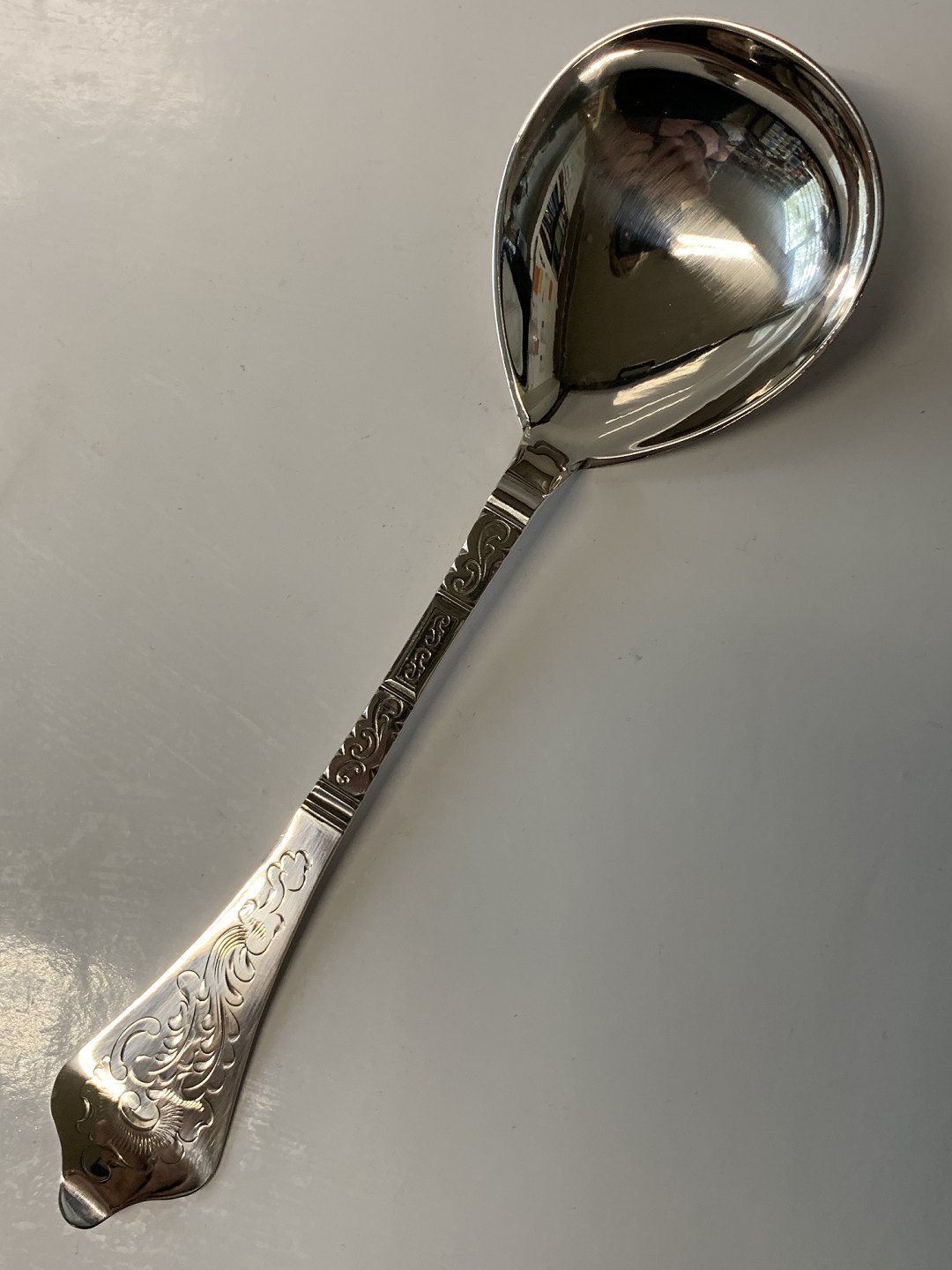 Antik Rococo, Sølv Middagsske med gravering på bag