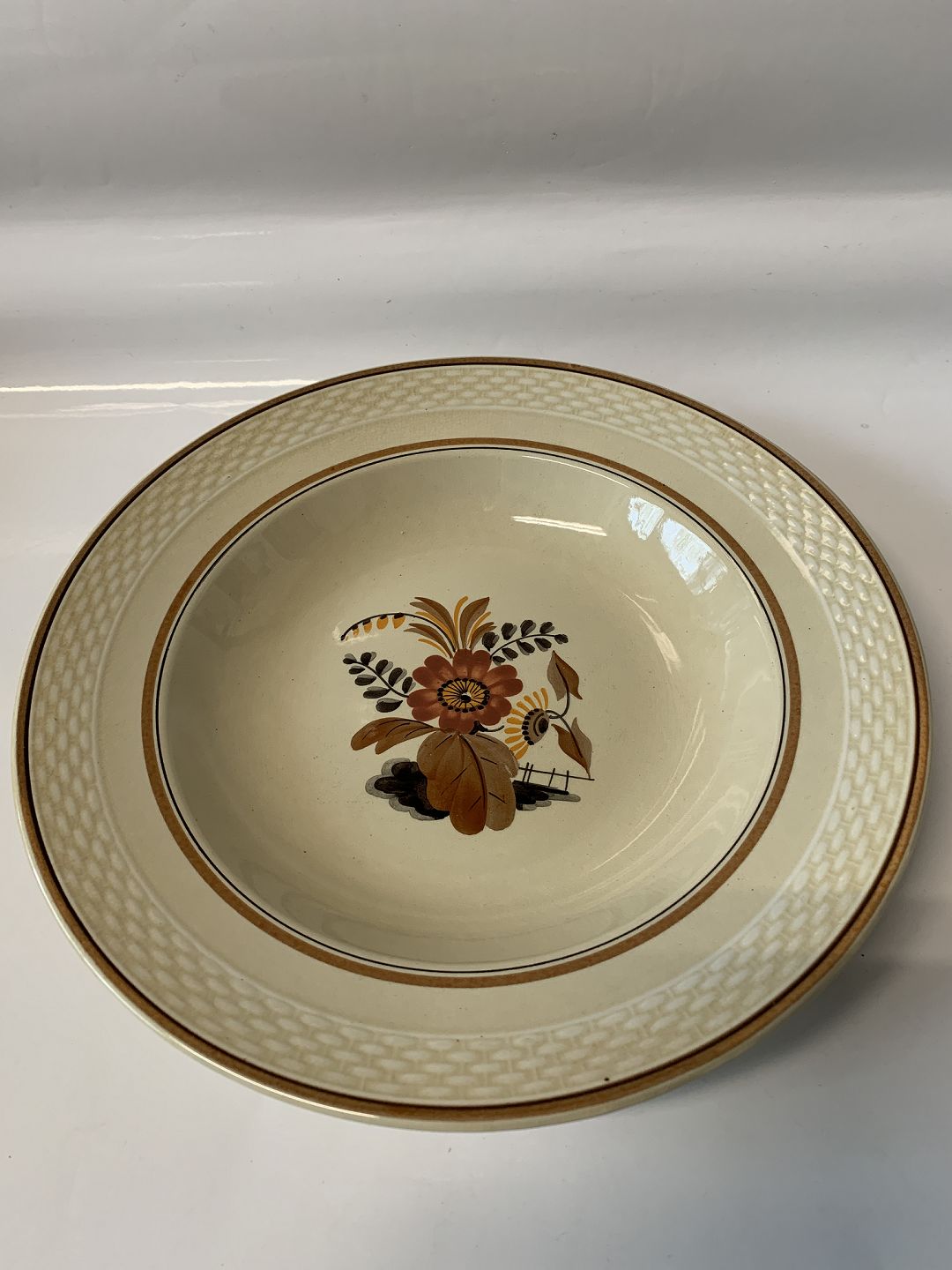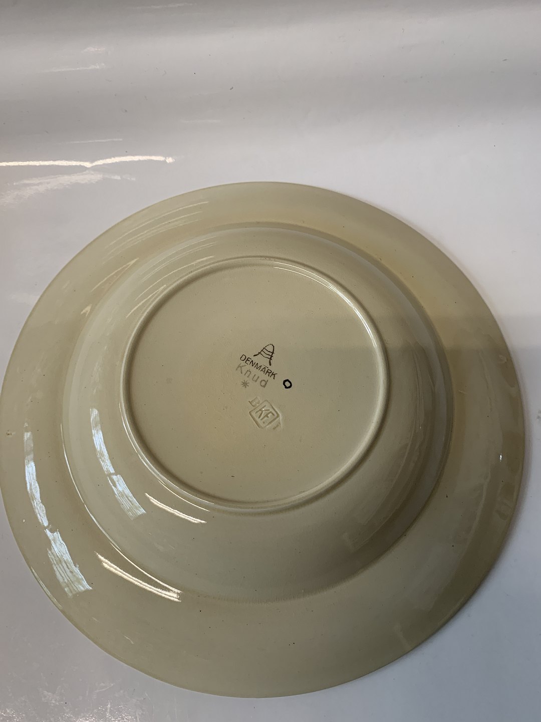 Aluminia fajance. Knud. Dyb middagstallerken, Design Nils Thorsson. Håndmalet. Produceret i perioden 1934-1963. Diameter 23 cm. God stand.
