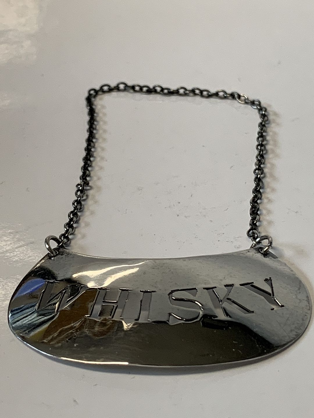 Whisky skilt, sterling, Flaske / Karaffel skilt.