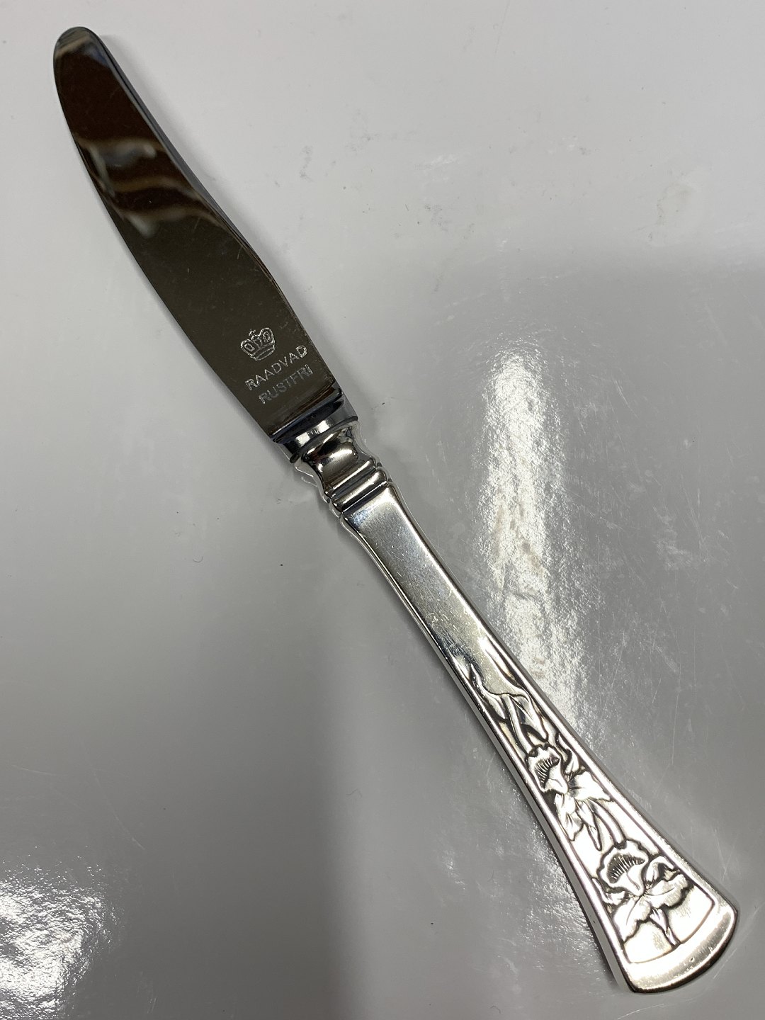 Orchid / Orkide Children's Knife in Silver Length 17.2 cm Made at Horsens Sølvsmedie, Orkide silver cutlery 830s Nice and polished condition Packed in bag