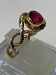 14 karat guldring med rød facetslebet sten og diamanter. Stemplet 585.