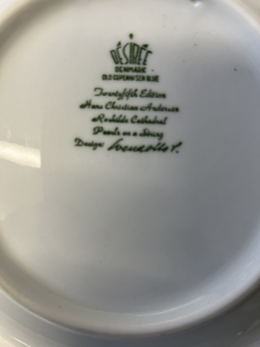 Juleplatte Desiree Denmark 1994 Et stykke perlesnor Old Copenhagen blue Hans Christian Andersen Måler: 18,5 cm Pæn og velholdt stand
